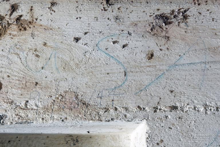 Vue du marquage de l'entrée n° 2 : une date, 16 septembre 1944 et graffitis, photographie réalisée le 11 mai 2009Immatriculation