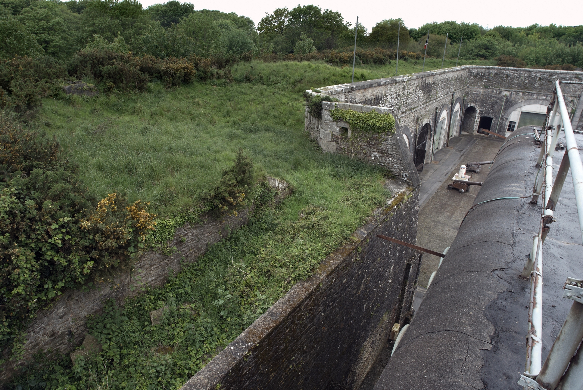 Vue du cavalier d'artillerie depuis le sommet du bunker français (état en 2009)Immatriculation