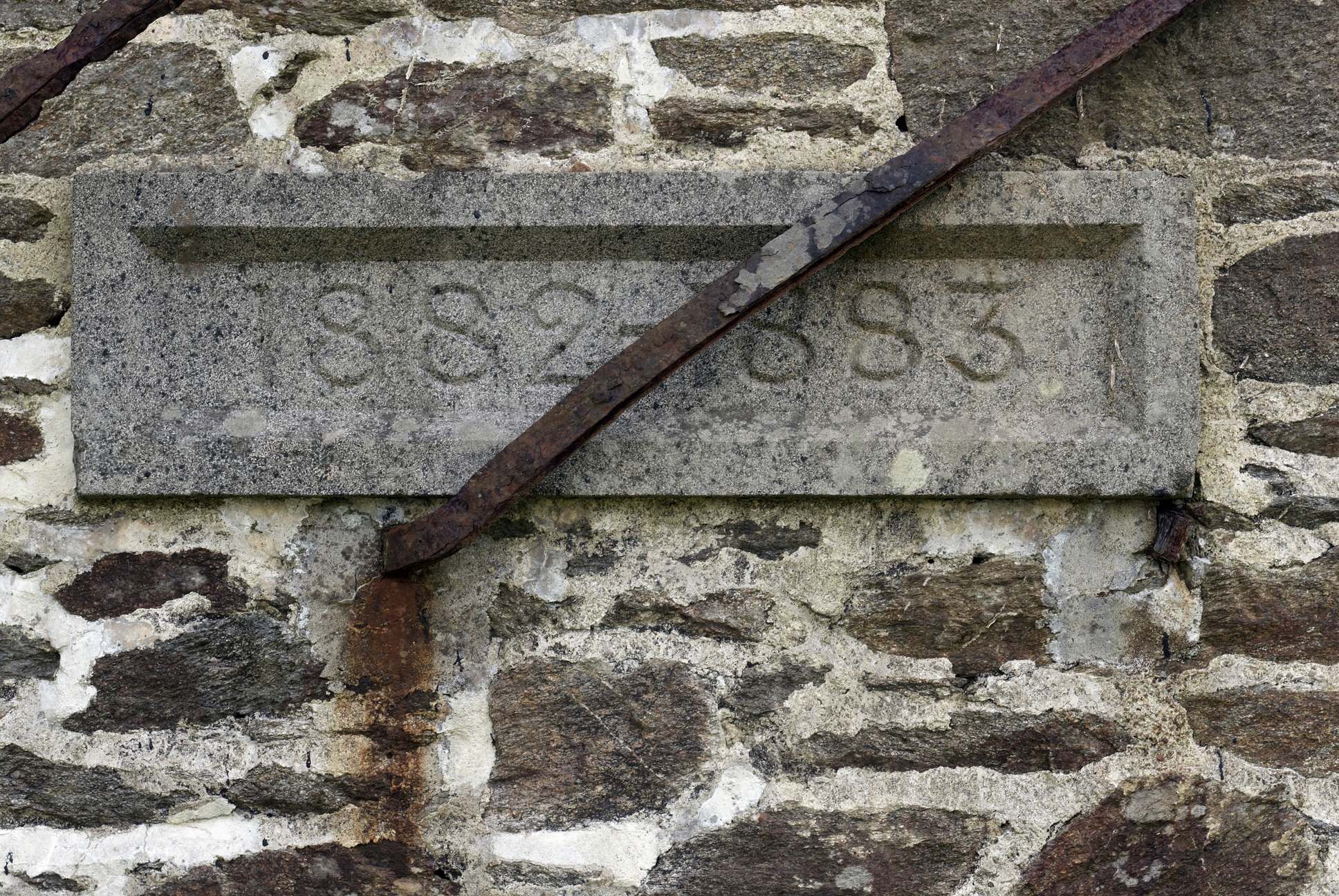 Vue de détail de la traverse d'une batterie de côte française : millésime "1882-1883" (état en 2009)Immatriculation