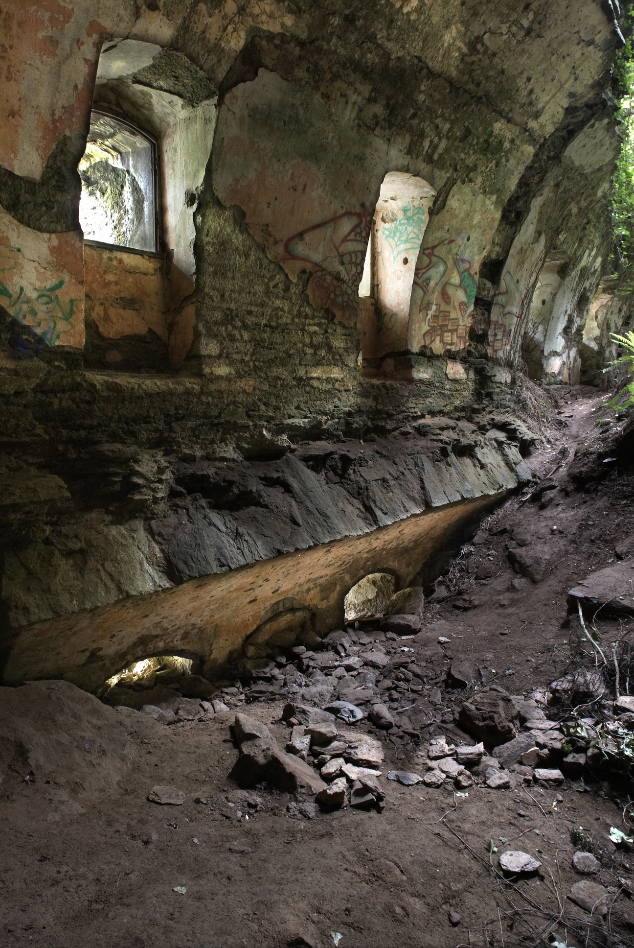 Brest : la redoute du Questel, la voûte du casernement de droite s´est effondrée lors des bombardements aériens de 1944, photographie réalisée le 12 mai 2009Immatriculation