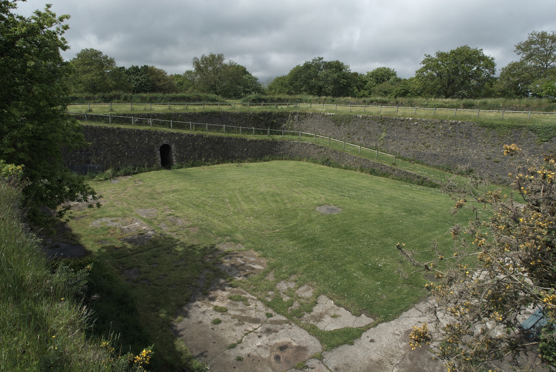 Brest : la redoute du Questel, cour intérieure, rampe permettant de monter l'artillerie sur le cavalier, photographie réalisée le 12 mai 2009Immatriculation