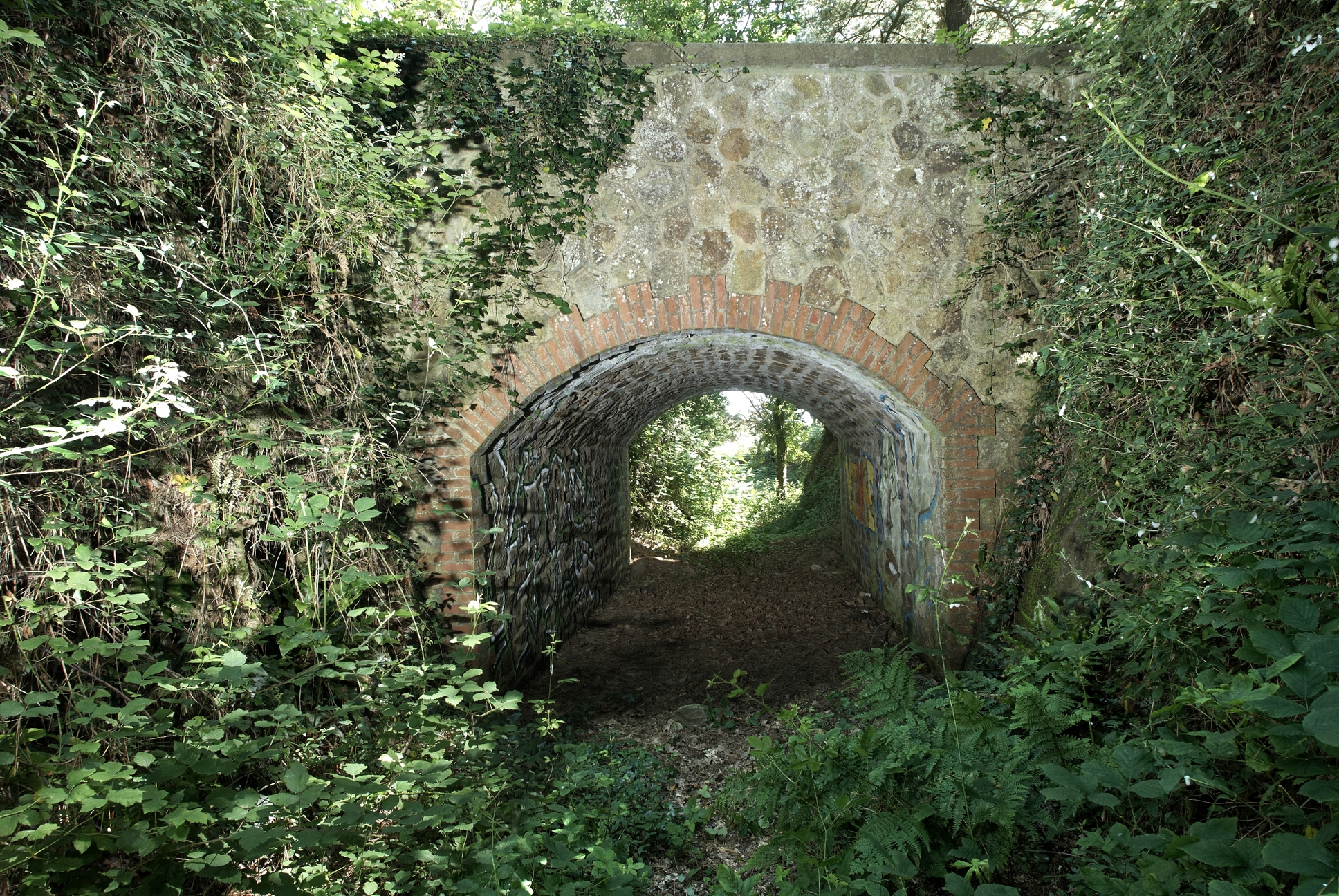 Vue du pont à une arche. Il permet la communication entre la batterie d'artillerie et le magasin à poudre sous rocImmatriculation