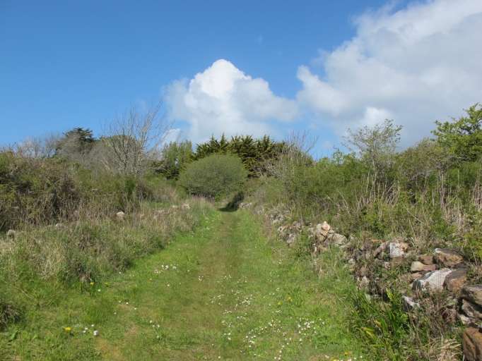 Cap de la Chèvre. Bregoulou. Sentier délimité par d'anciennes clôtures en pierre sècheImmatriculation
