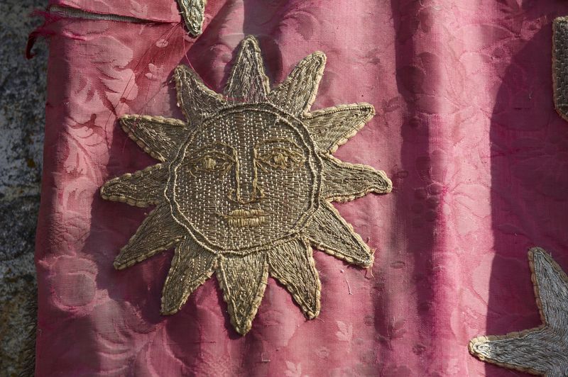 Ensemble de 2 bannières de procession : Christ en croix ; Immaculée Conception ; Sacré Coeur (Rimou),