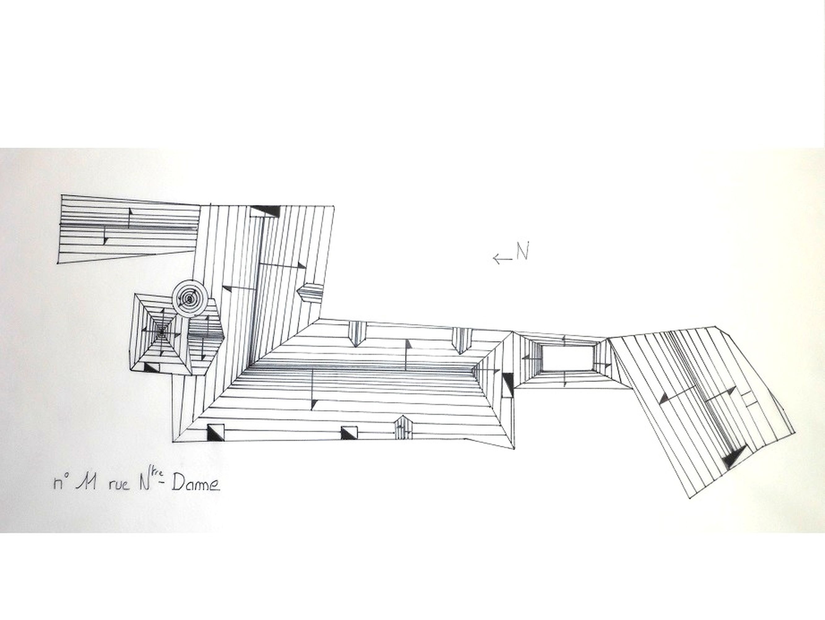 Schéma de toitures du corps de logis et de l'aile sudImmatriculation