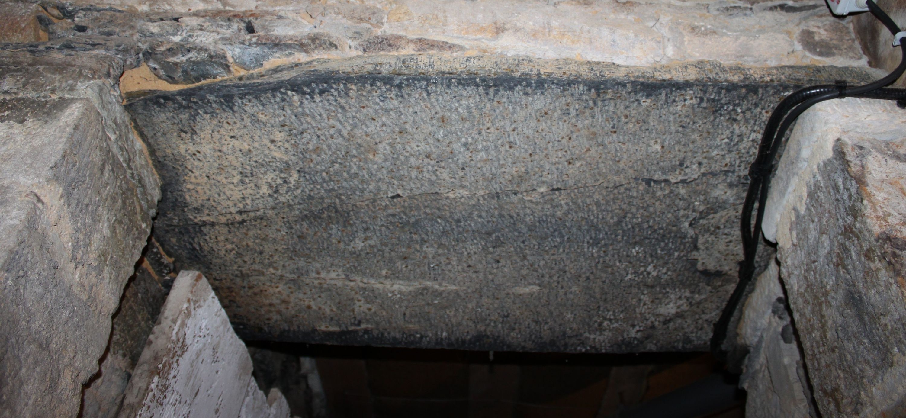 Linteau en plaque de schiste de la porte reliant la partie nord-est à la partie sud-estImmatriculation
