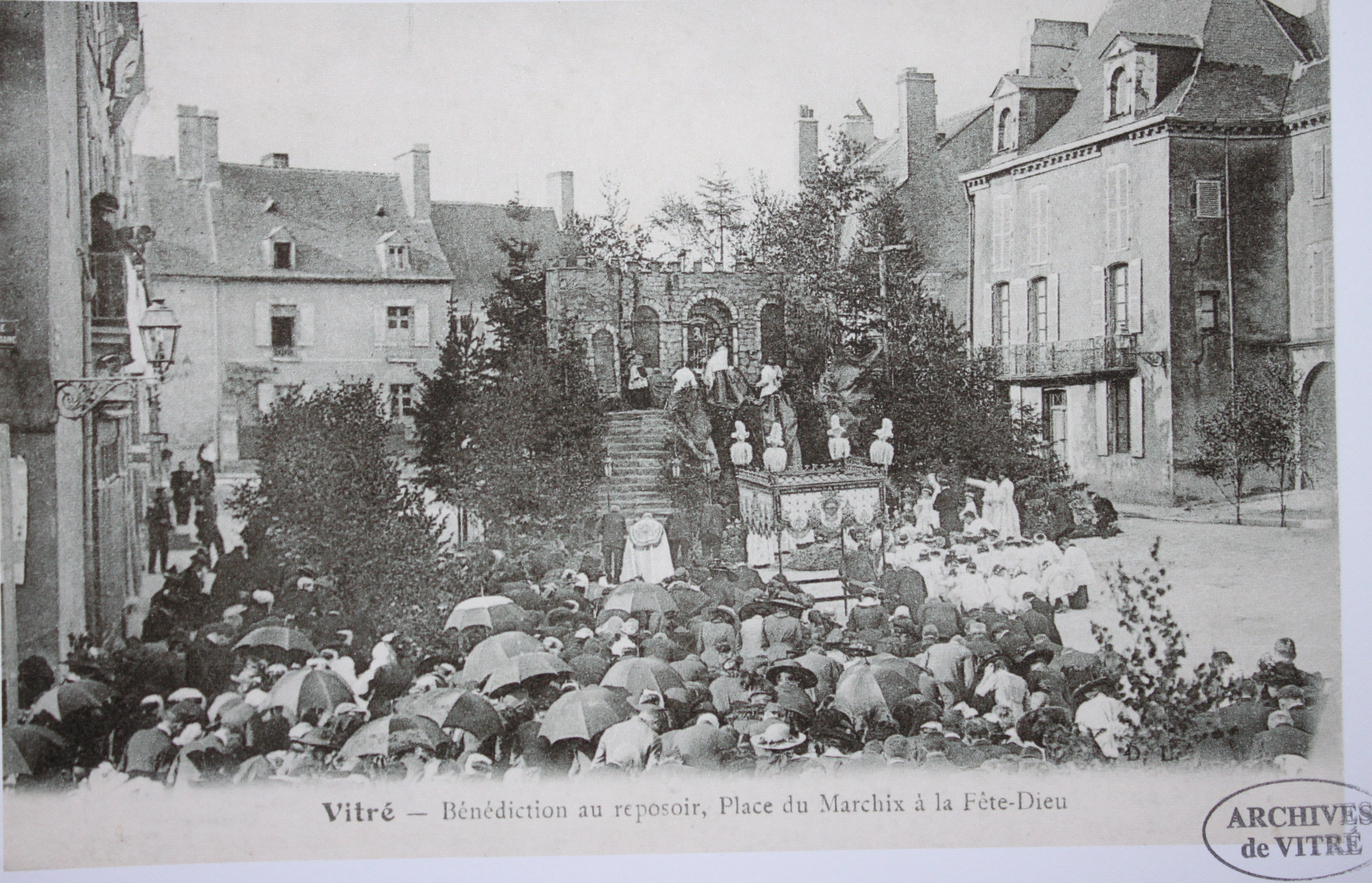 "Bénédiction au reposoire, Place du Marchix à la Fête-Dieu", carte postale ancienneImmatriculation