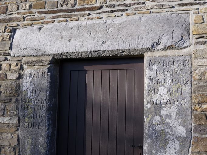Chapelle, porte sud : inscriptions et dates gravées (état en 2012)Immatriculation