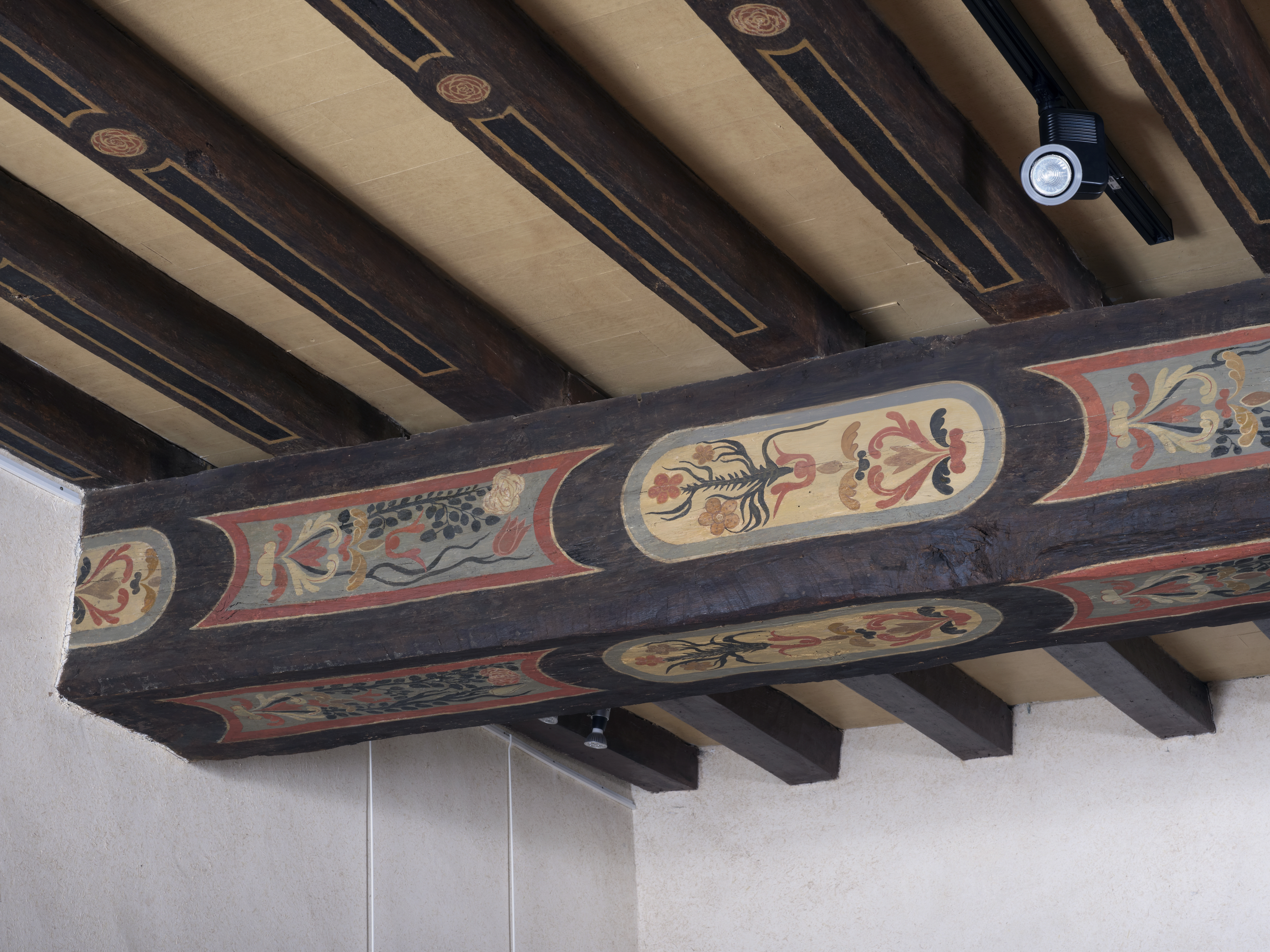 5-7, rue Sainte-Anne, maison, actuellement médiathèque, 1er étage : poutres polychromes (restaurées) (état en 2012)Immatriculation