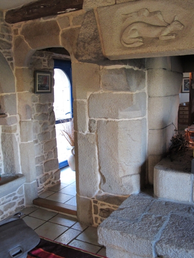 Corps de bâtiment nord, porte de communication avec l'ancienne étable et piédroi de la cheminée de la salleImmatriculation