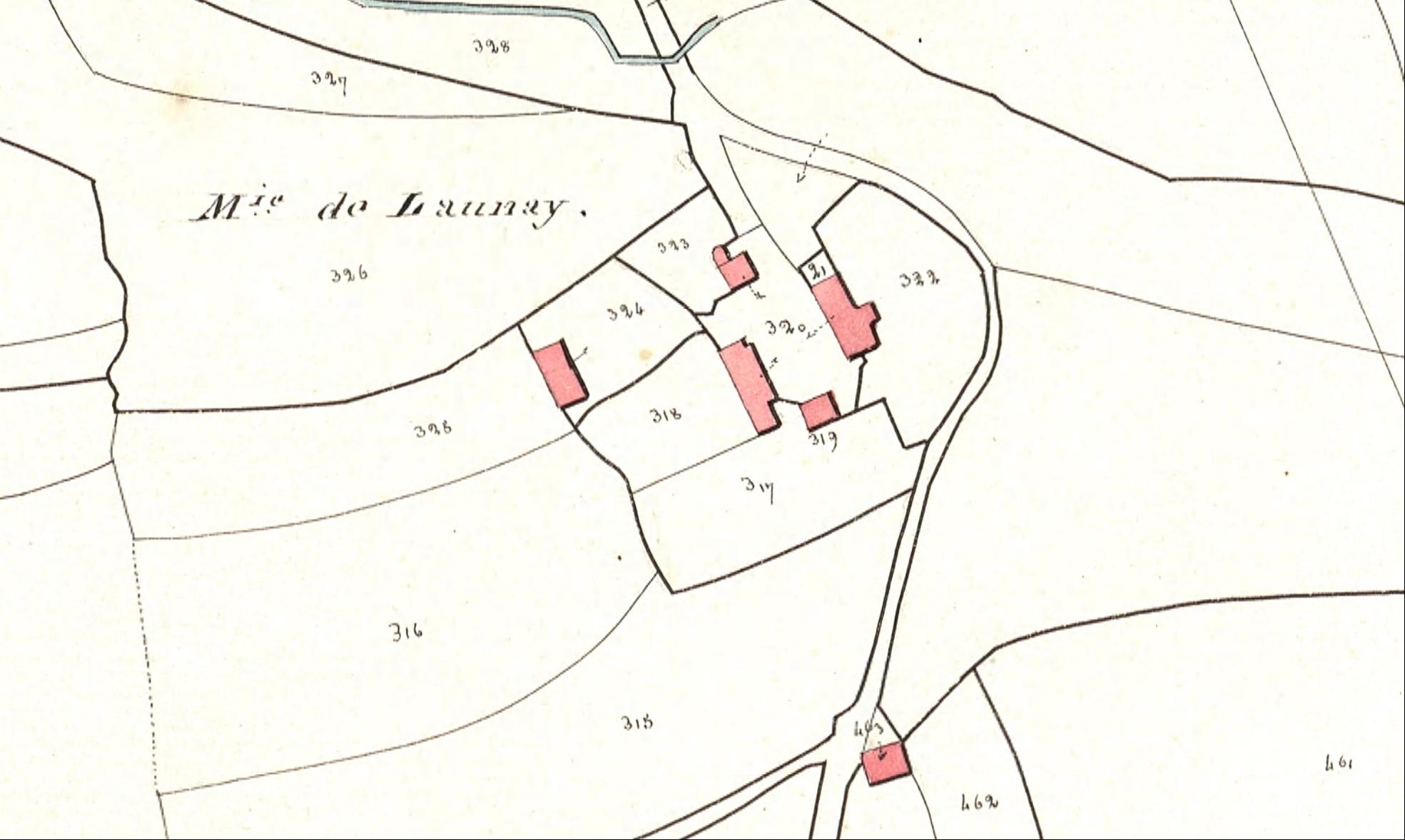 La métairie de Launay sur le cadastre de 1824 (section D1, dite de Begasson)Immatriculation