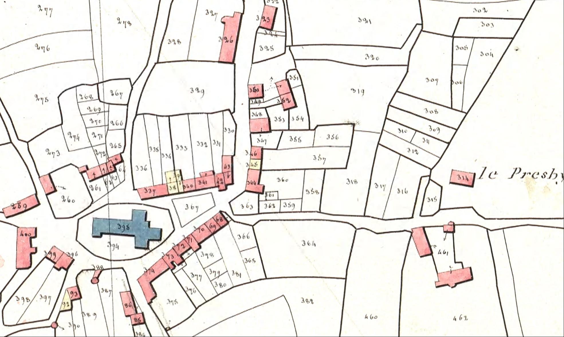Le centre du bourg sur le cadastre de 1824section K, dite du bourg (Archives départementales du Morbihan, série 3 P 205/21)Immatriculation
