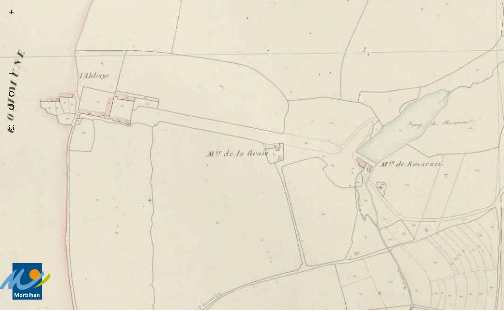 Le château de Rocarant, la métairie et le moulin sur le cadastre de 1823 (A. D. du Morbihan, 3 P 60/2)Immatriculation