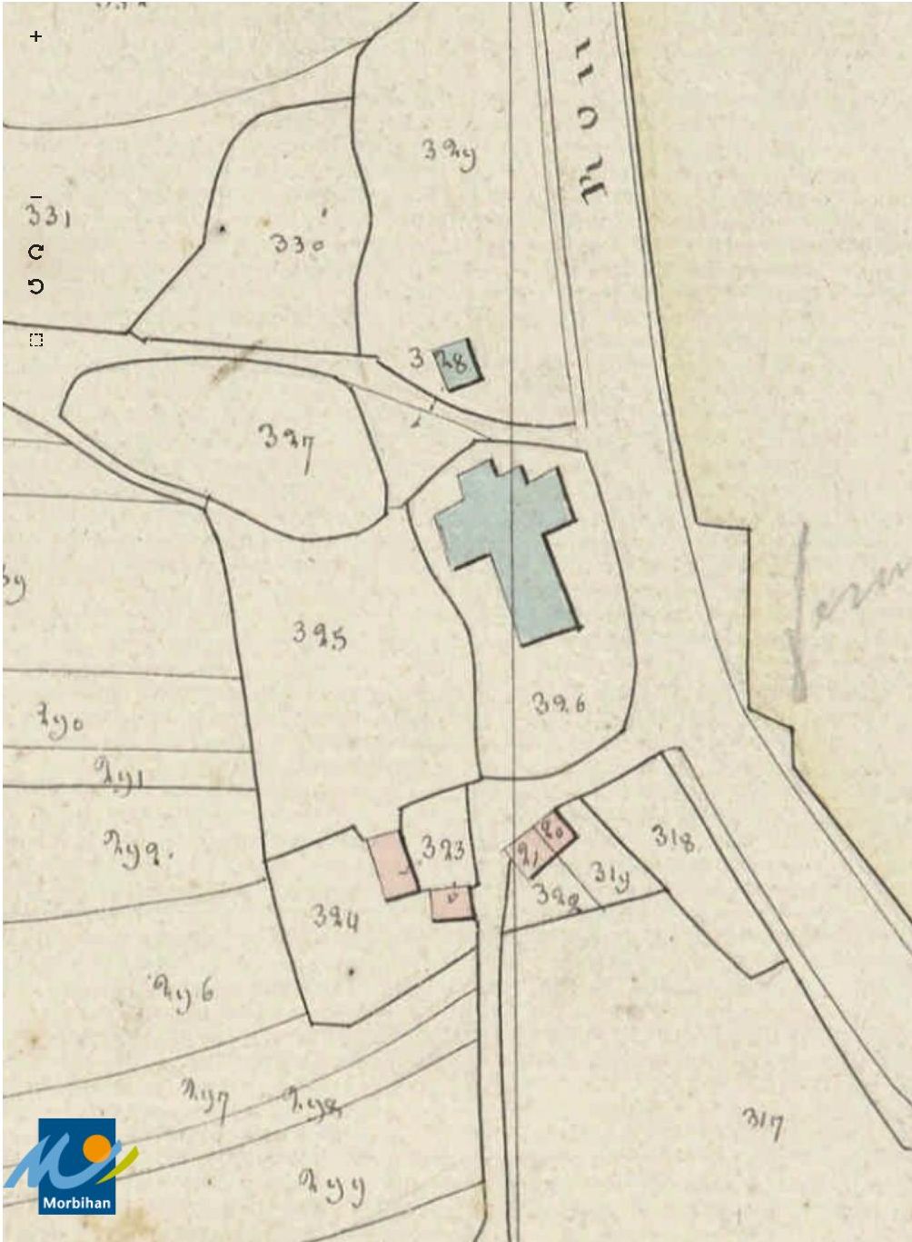 L'église sur le cadastre de 1823 (A. D. du Morbihan, 3 P 60/4)Immatriculation