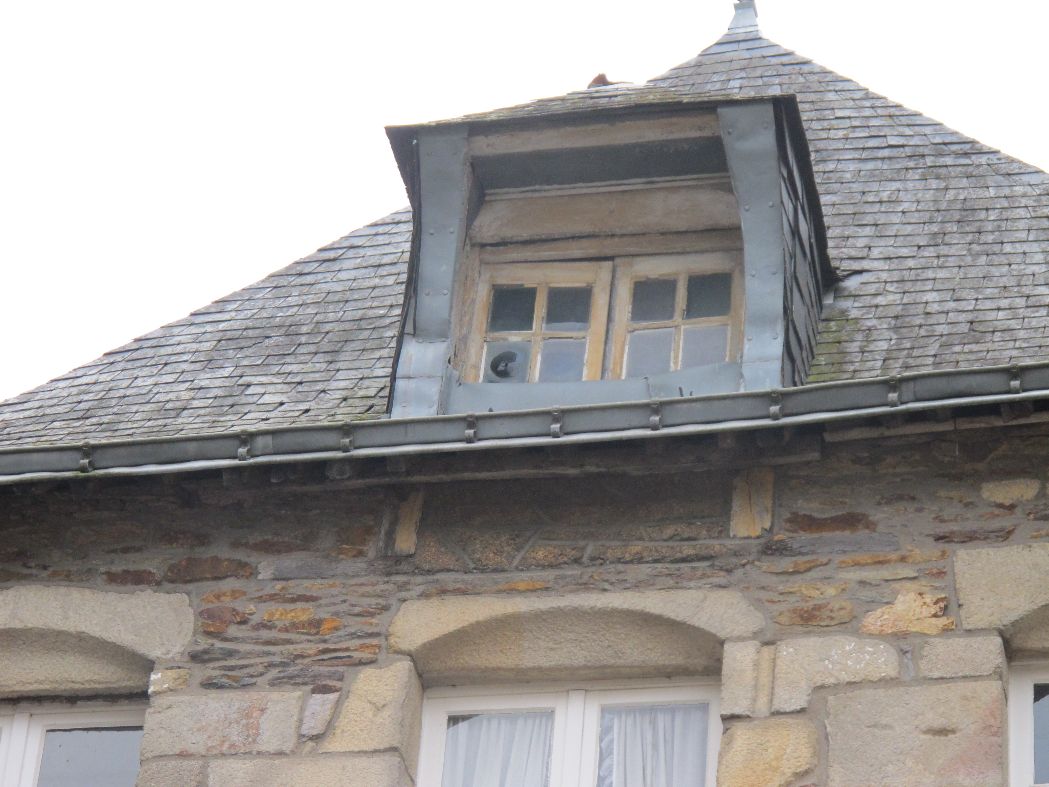 Maison : avant la reprise de la fin du 18e siècle, la lucarne en bois descendait plus bas qu'aujourd'hui (état en 2012)Immatriculation