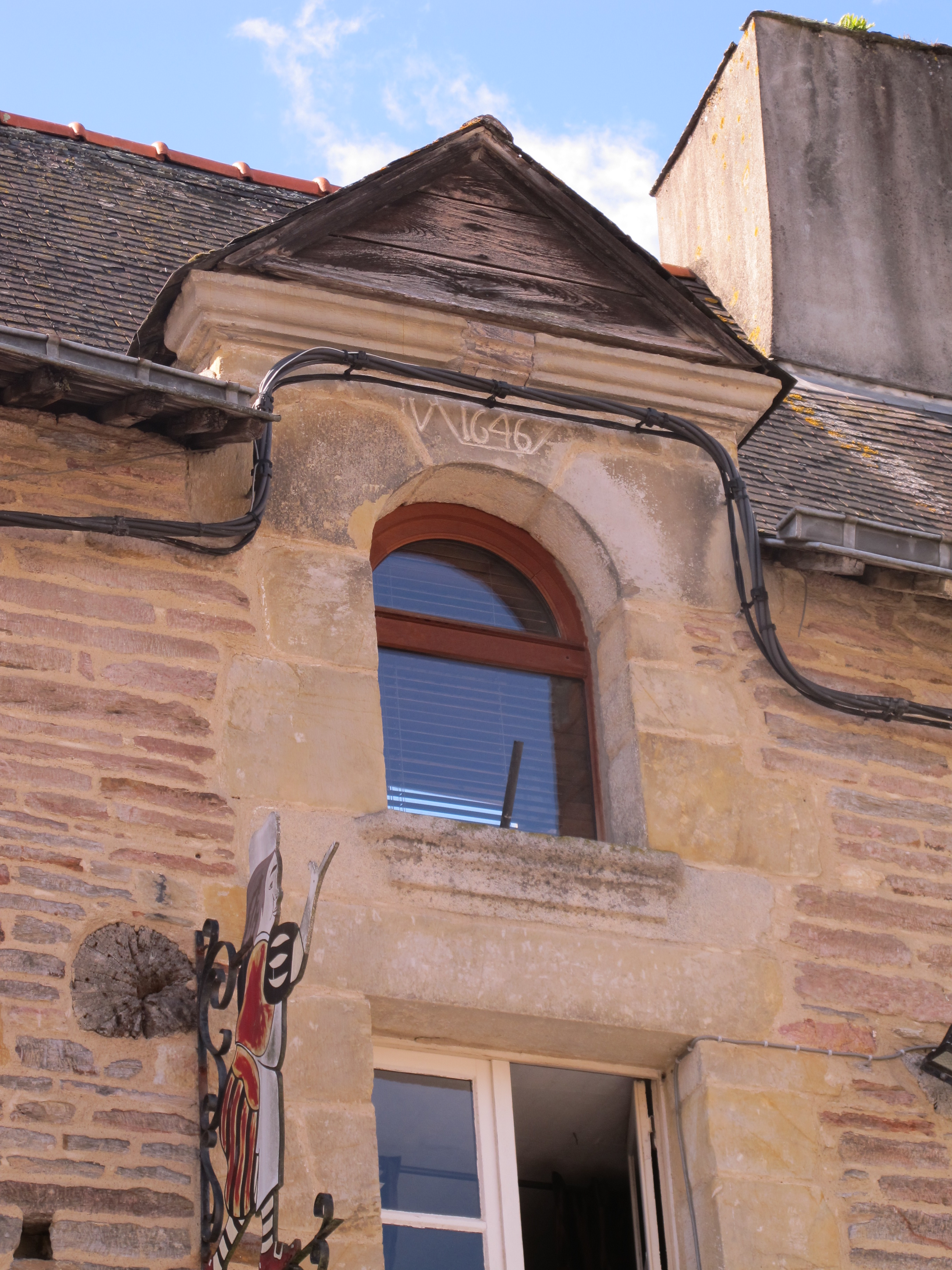 Maison, élévation nord : la lucarne passante portant la date 1646 (état en 2012)Immatriculation