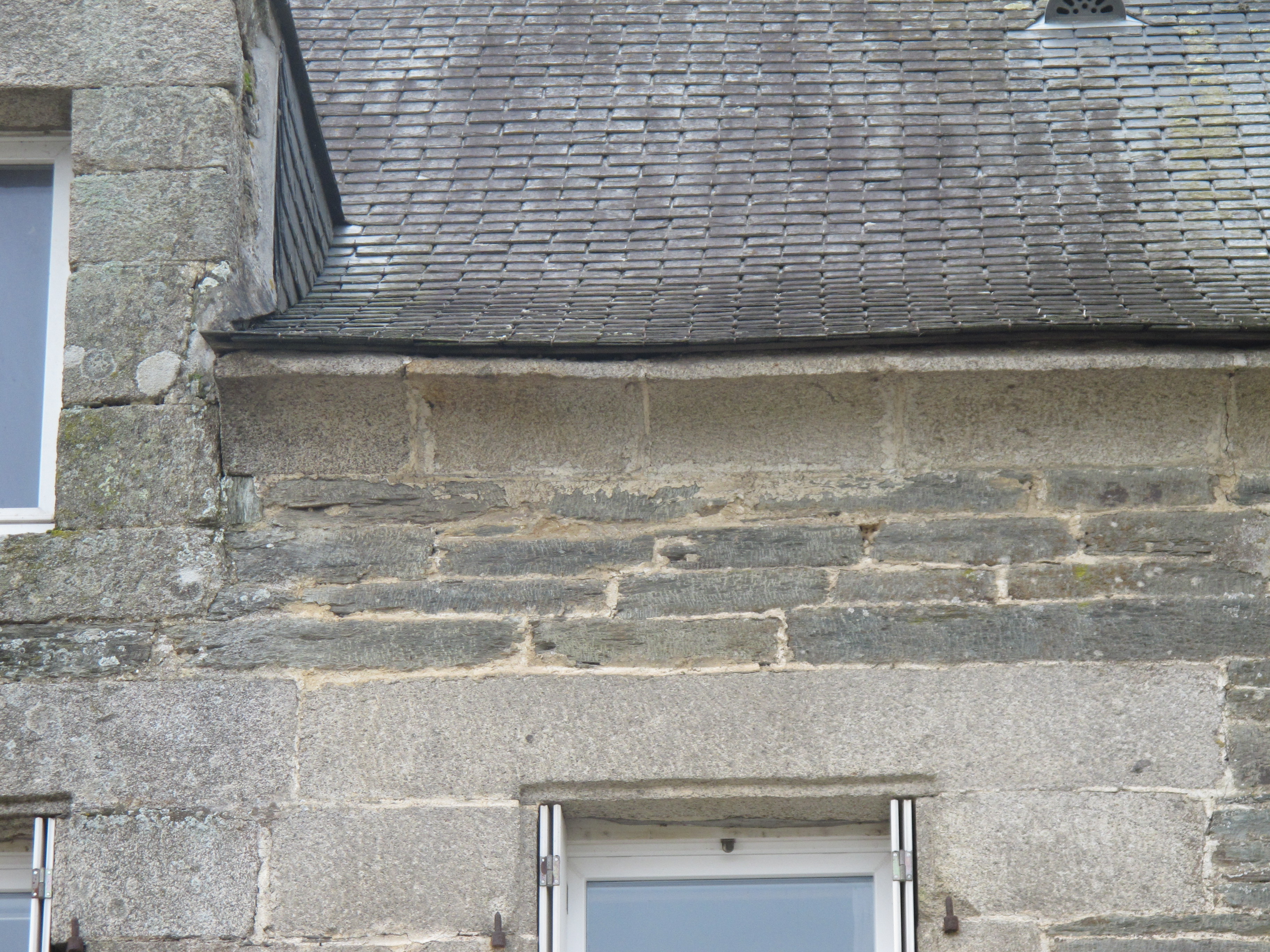 35, faubourg Saint-Michel, maison : la corniche en pierre de taille de granite moulurée (état en 2012)Immatriculation