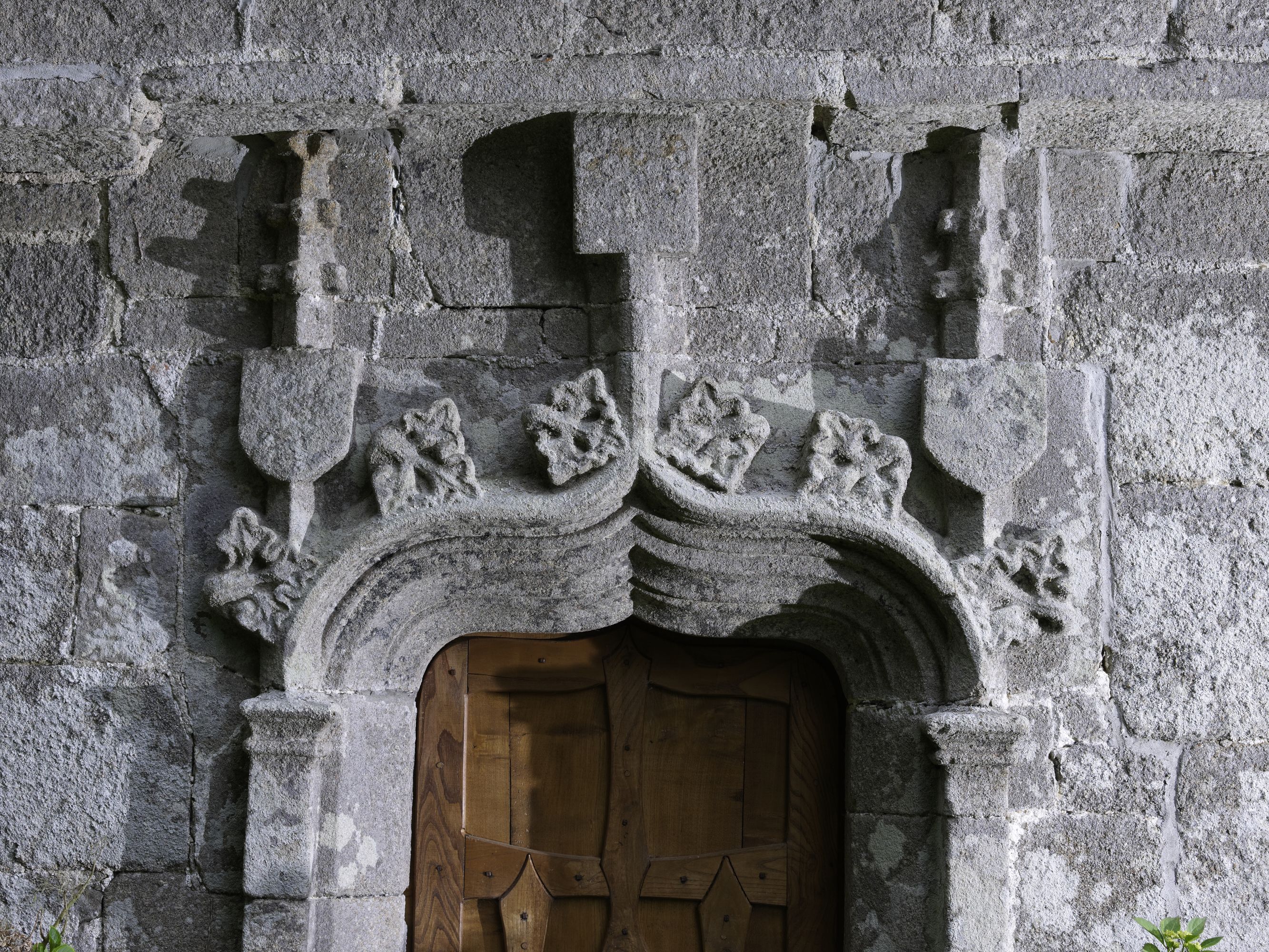 Cavan, Bardérou : chapelle Notre-Dame des Anges, élévation sud, détail de la porte ornée de style gothiqueImmatriculation
