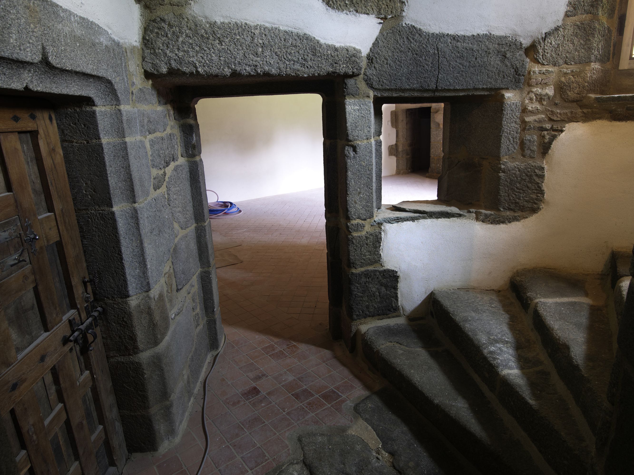 Caouënnec-Lanvezeac, Runoden : manoir, tour d'escalier en vis, porte de la cuisine et passe-platImmatriculation