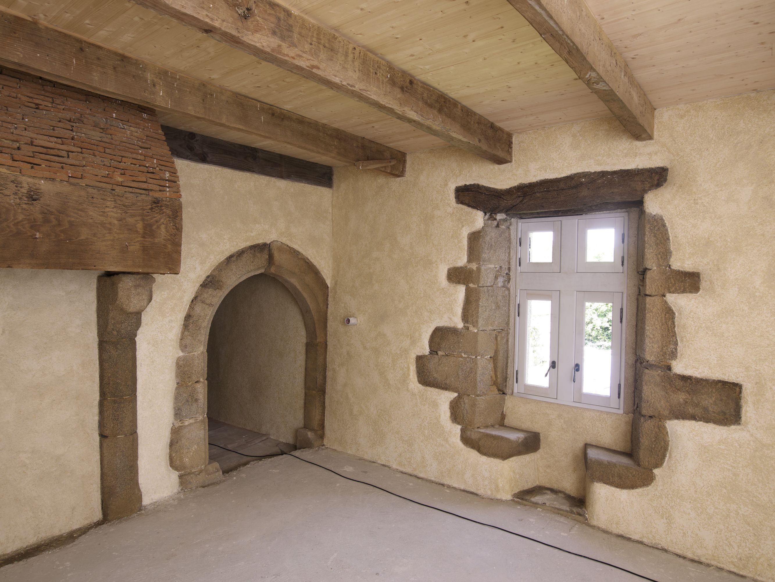 Caouënnec-Lanvezeac, Runoden : manoir, partie sud, étage, cheminée, porte et fenêtre à coussiègesImmatriculation