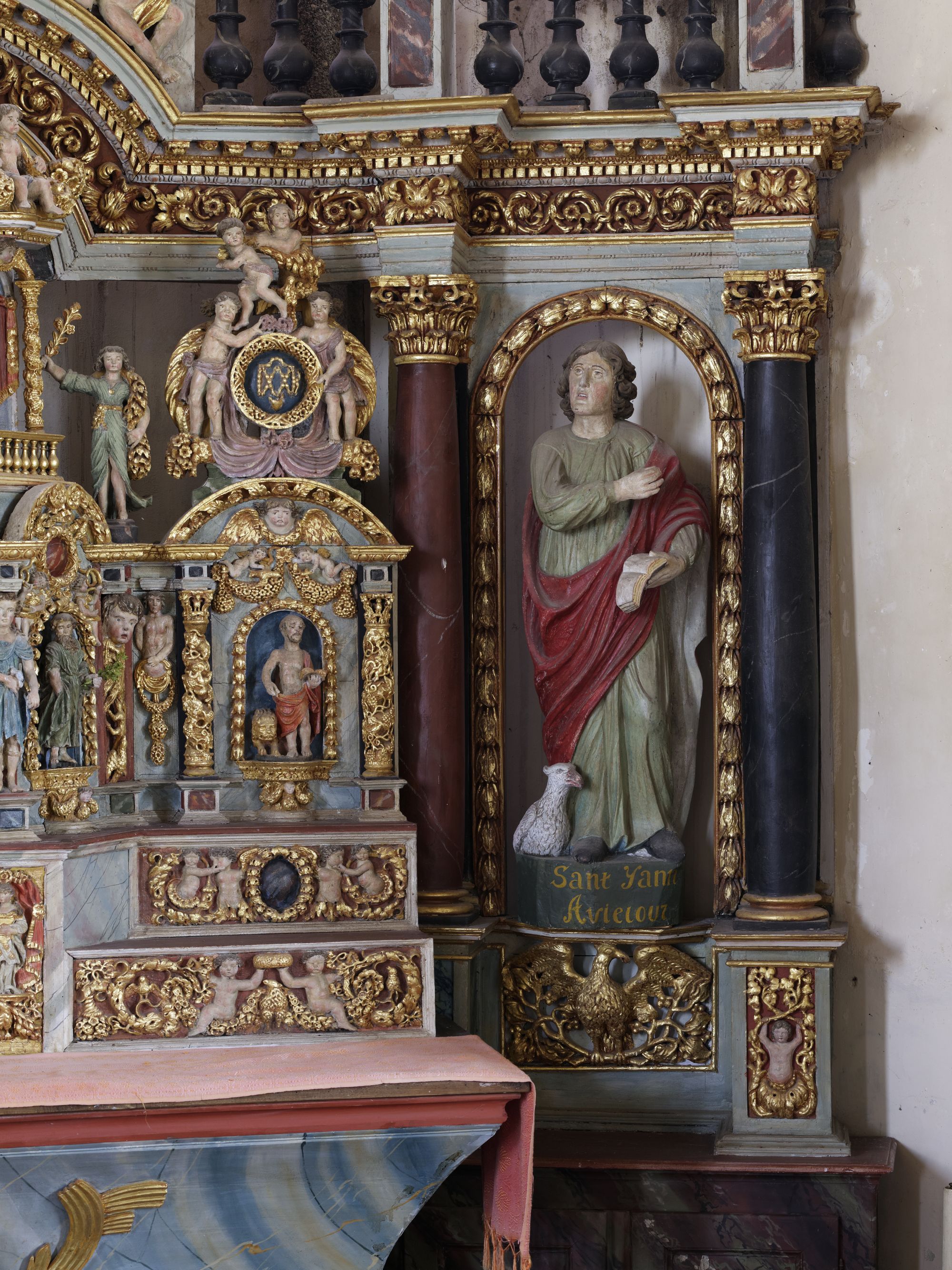 Caouënnec-Lanvézéac, bourg de Caouënnec : église paroissiale de Notre-Dame, statue du maitre-autelImmatriculation