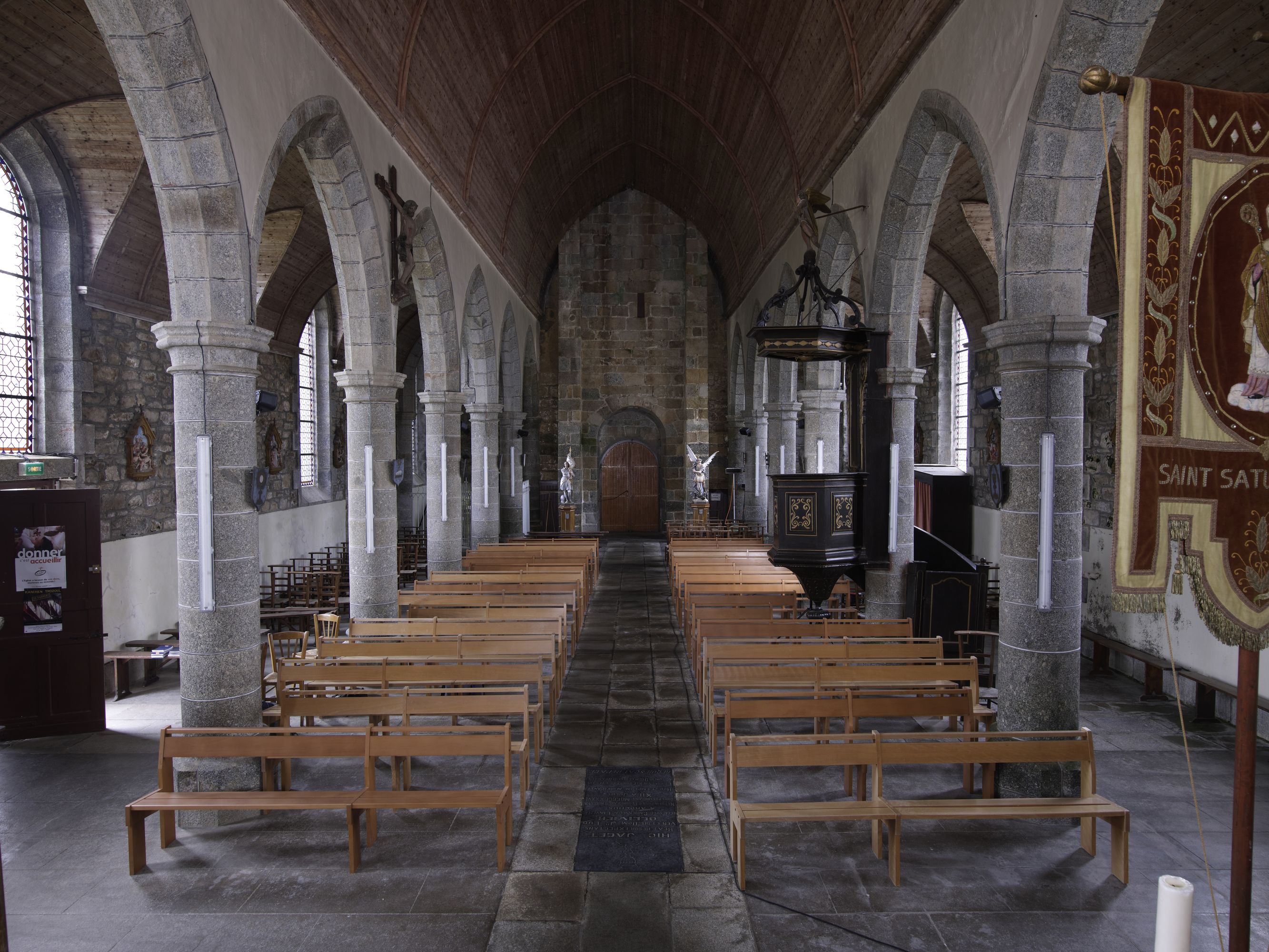 Caouënnec-Lanvézéac, bourg de Caouënnec : église paroissiale de Notre-Dame, vue générale vers la nefImmatriculation