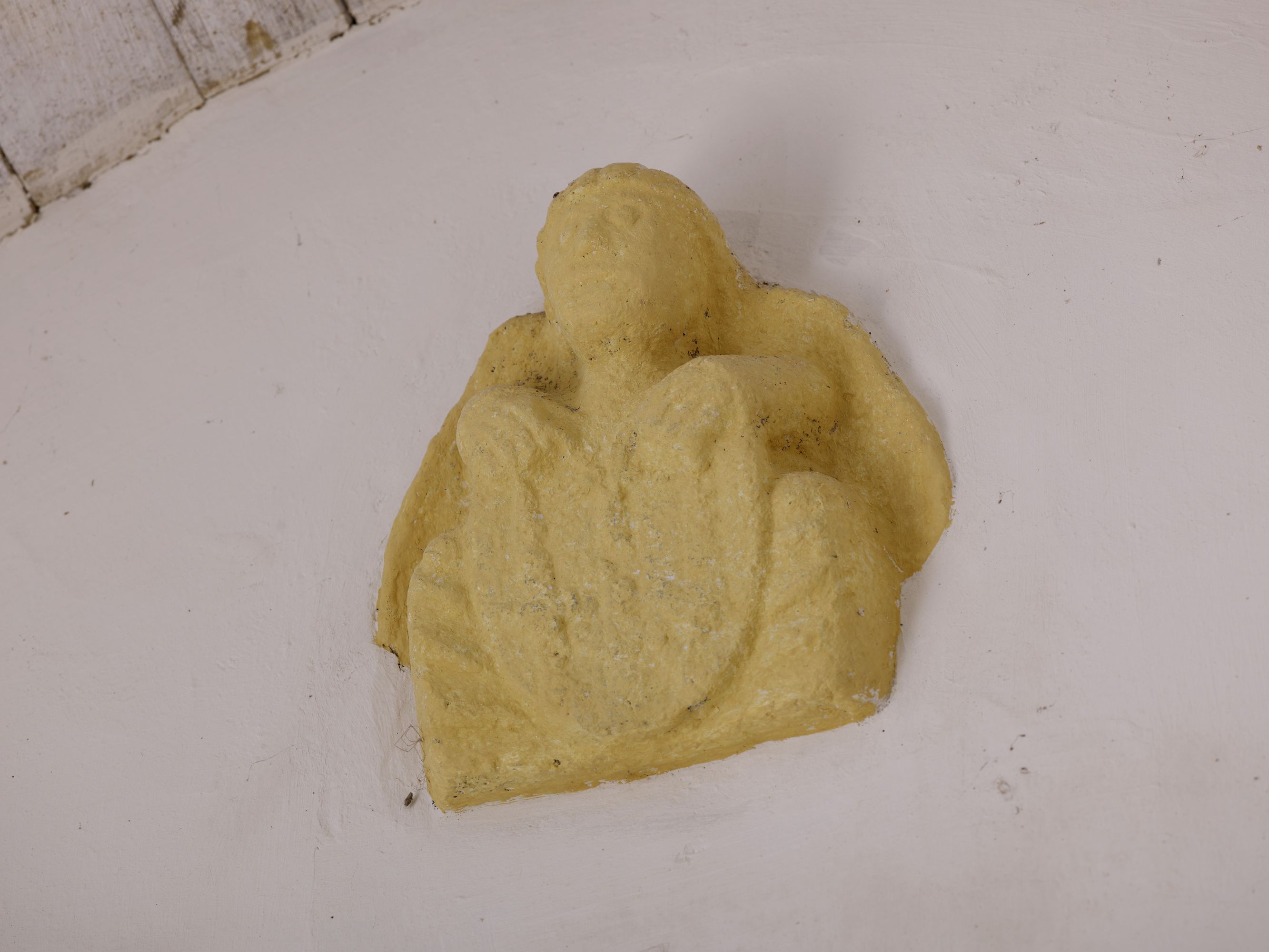 Caouënnec-Lanvézéac, bourg de Lanvézéac : église paroissiale de Saint-Ezéchiel, transept nord, détail de l'angelot porteur d'un blasonImmatriculation
