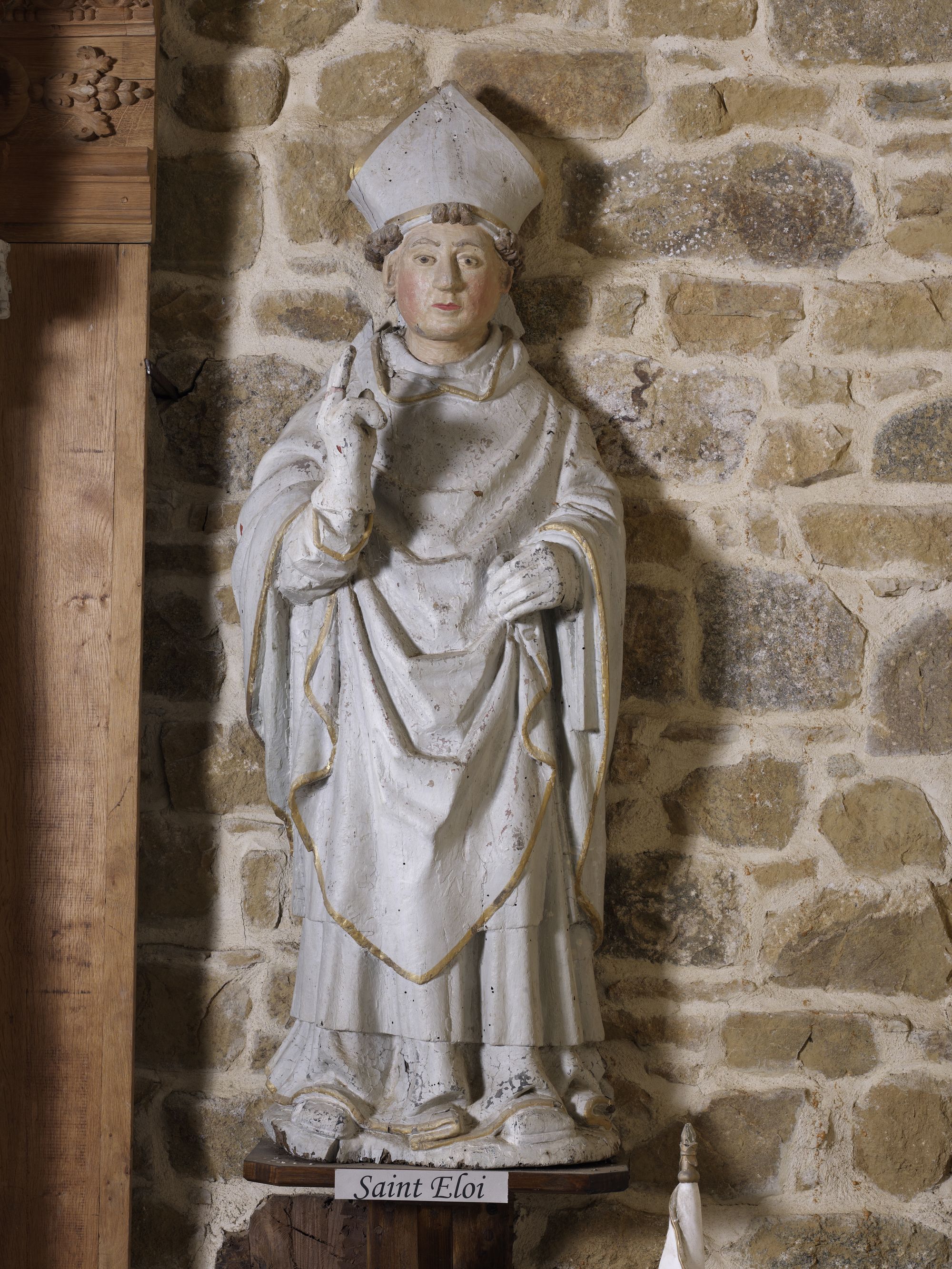 Berhet, le bourg : église paroissiale de Sainte-Brigitte, statue d'évêqueImmatriculation