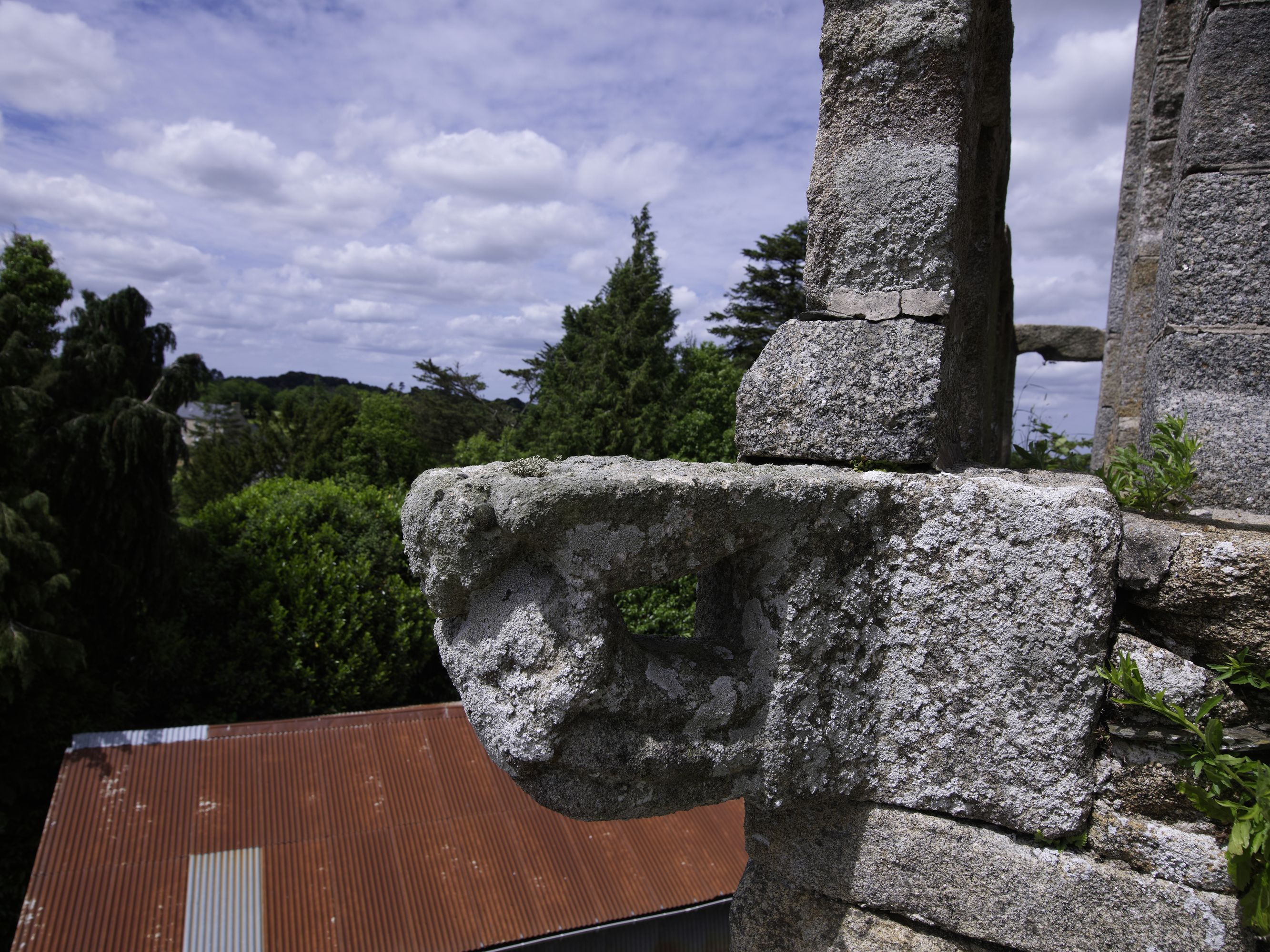 Berhet, le bourg : église paroissiale de Sainte-Brigitte, clocher, vue de détail du blochet représentant un angeImmatriculation