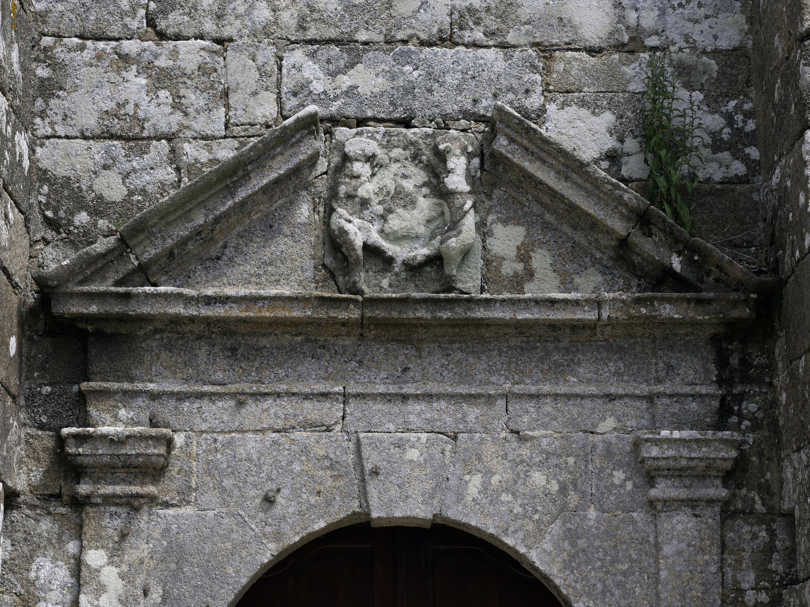 Berhet, le bourg : église paroissiale de Sainte-Brigitte, élévation ouest, vue de détail de la porte, ornementationImmatriculation