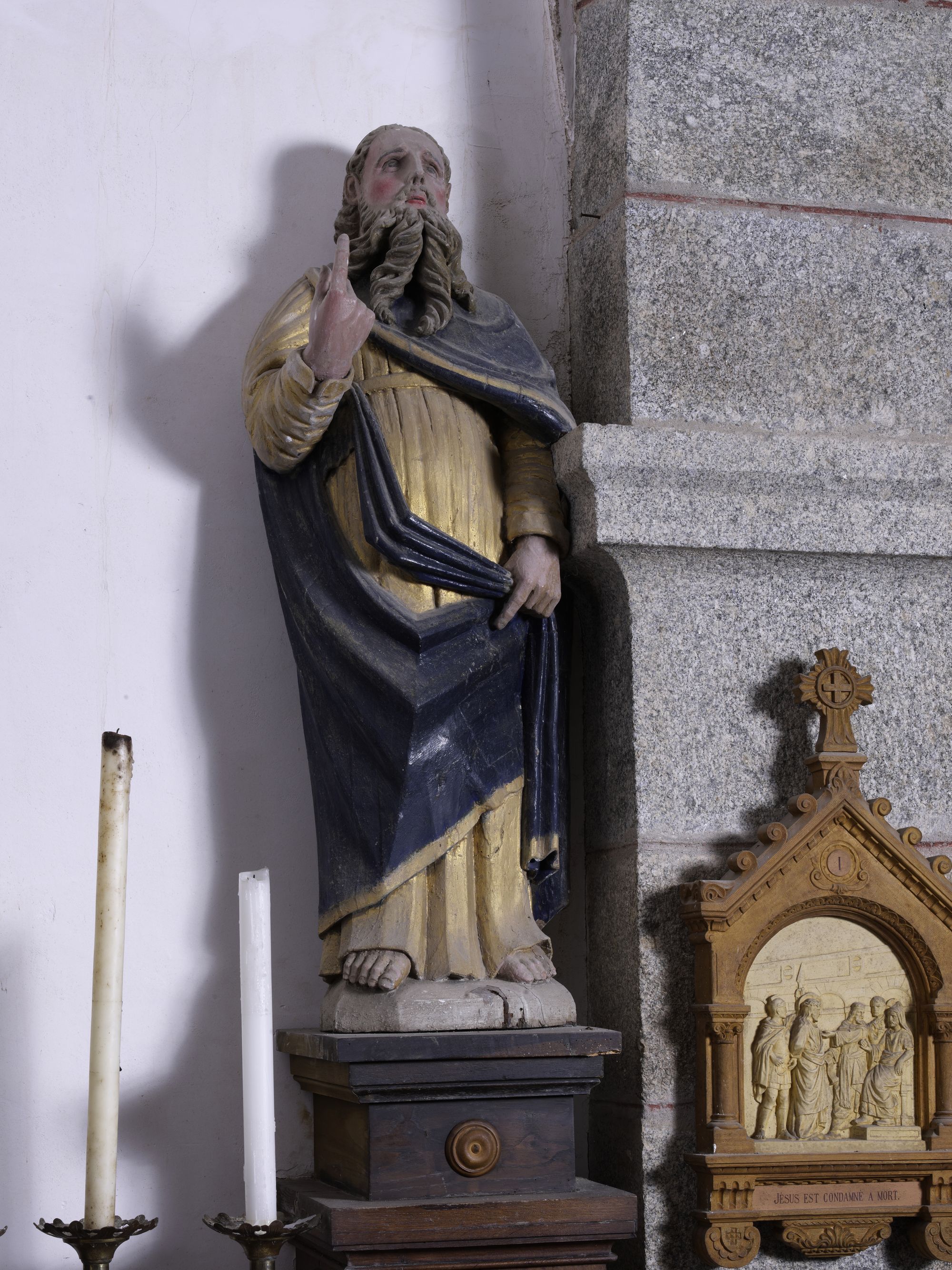 Coatascorn, le bourg : église paroissiale de Saint-Maudez, statue de SaintImmatriculation