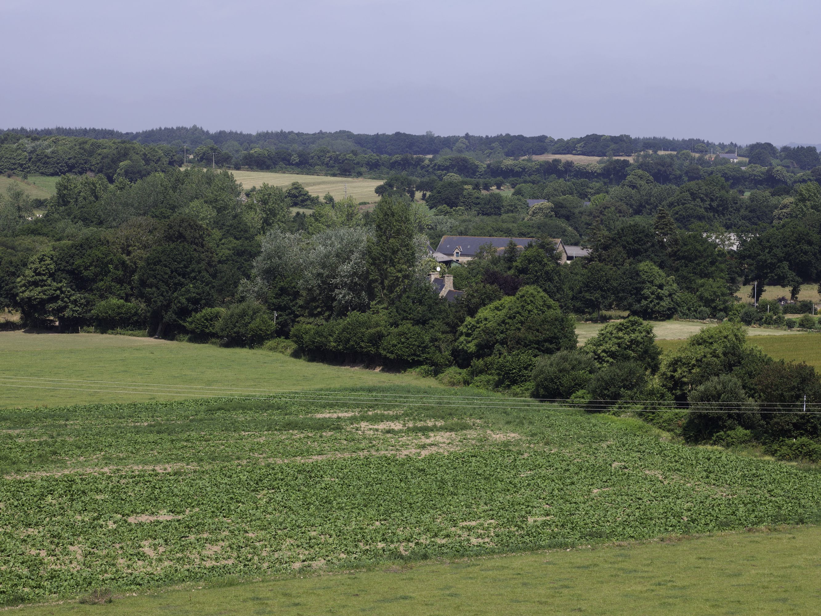 Berhet, Confort : vue du paysage vers Coat Cognon (nord-ouest) depuis le clocher de la chapelle Notre-Dame de ConfortImmatriculation
