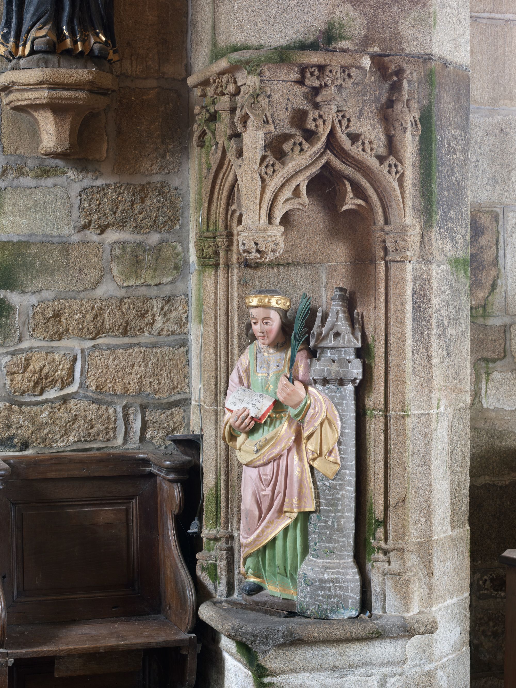 Tonquédec, le bourg : église paroissiale Saint-Pierre, vue intérieure, statue de SainteImmatriculation