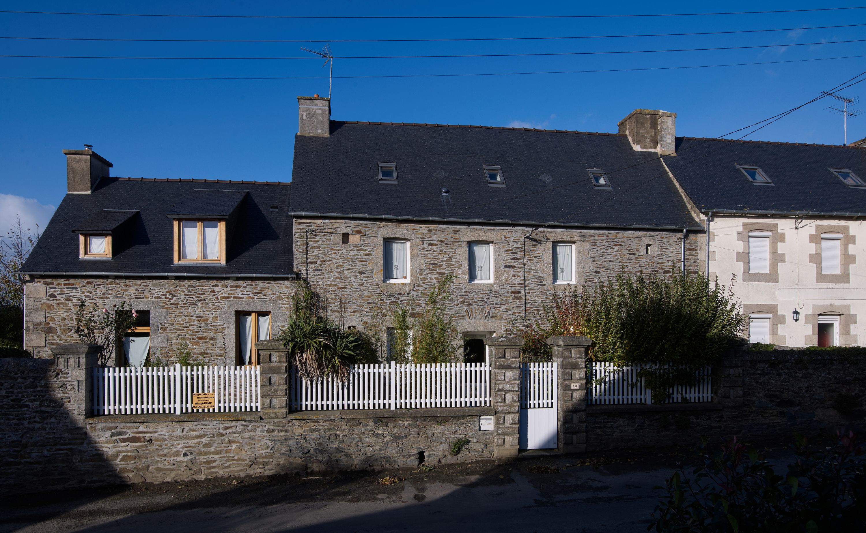 Rue Saint-Ildut. Alignement de maisons au nord de l'église paroissiale. Vue générale sudImmatriculation