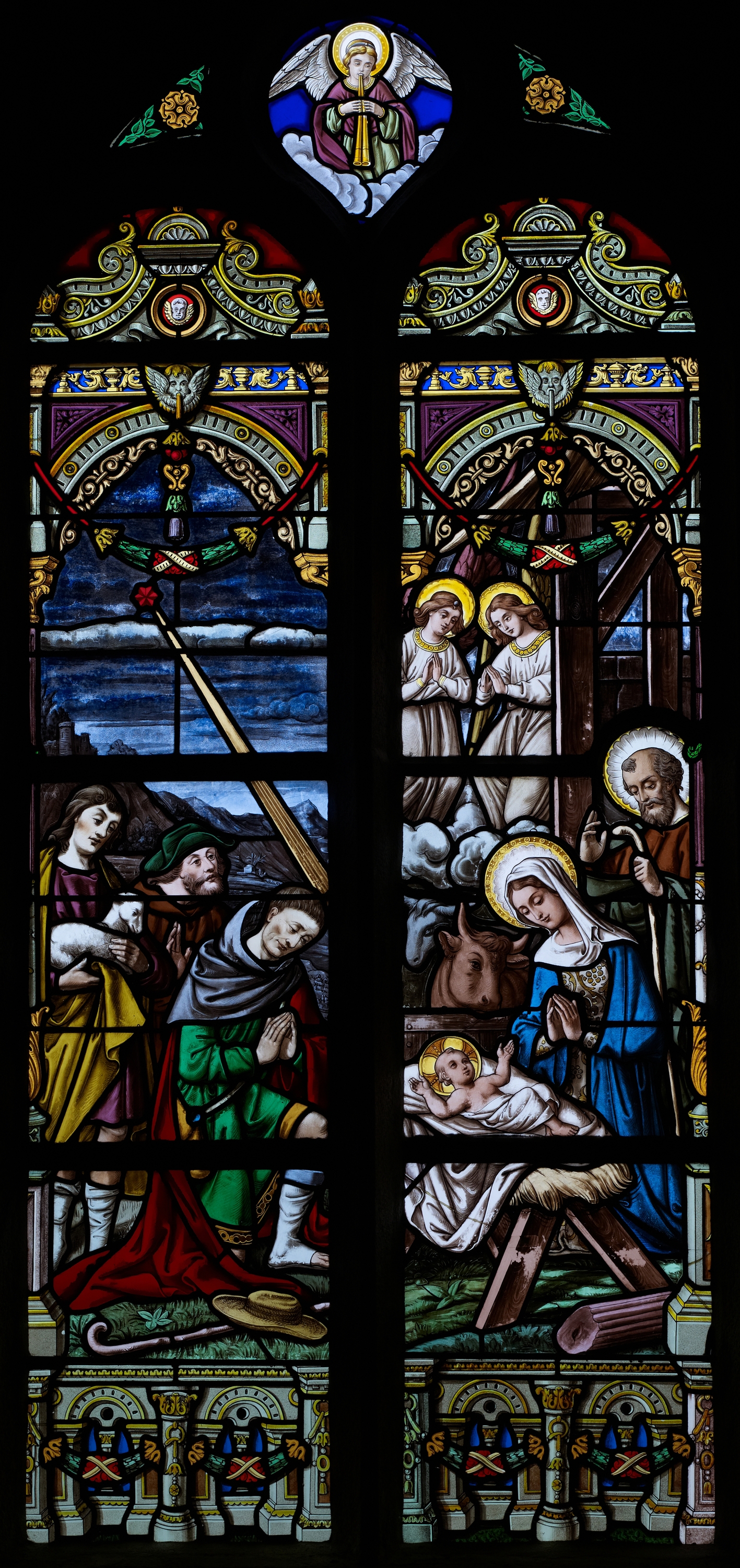 Langoat, le bourg : église paroissiale Sainte-Pompée, intérieur, vitrailImmatriculation