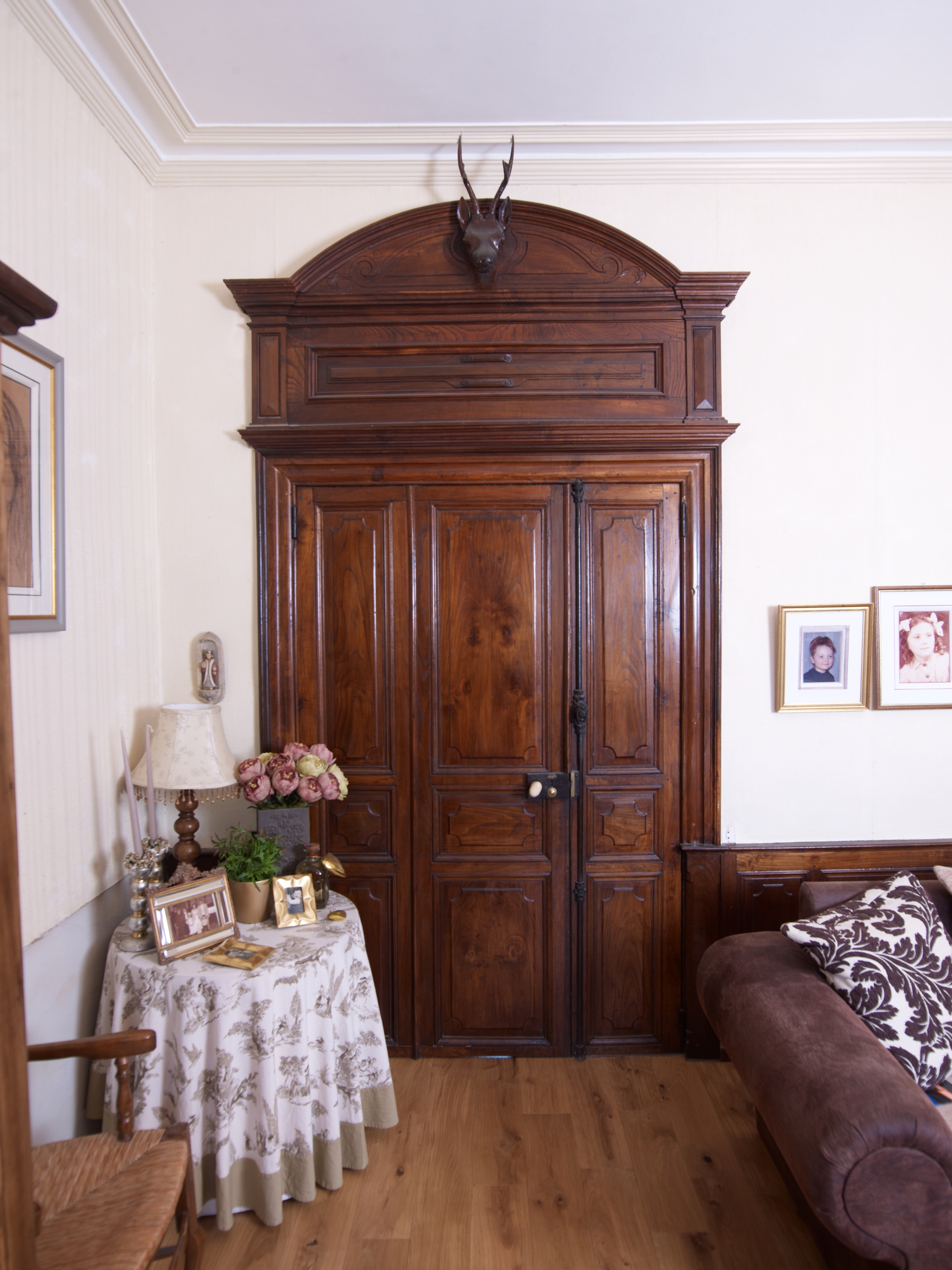 Logis secondaire. Salon. Détail de la porte tiercée donnant sur la cuisineImmatriculation