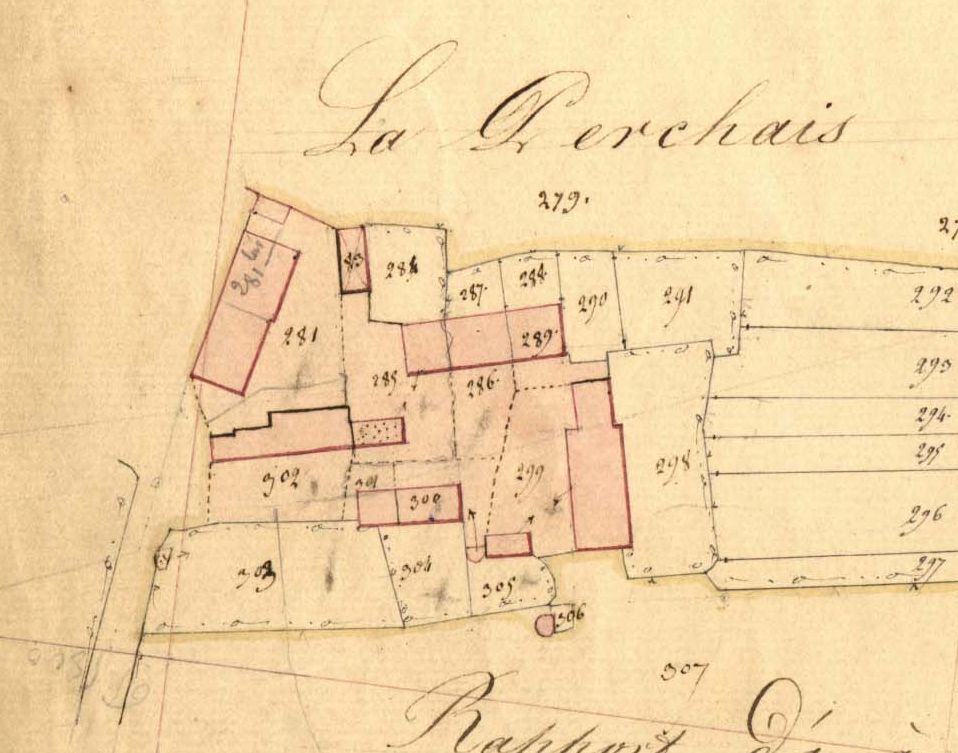 Extrait du cadastre de 1843, La Perchais, îlot sudImmatriculation