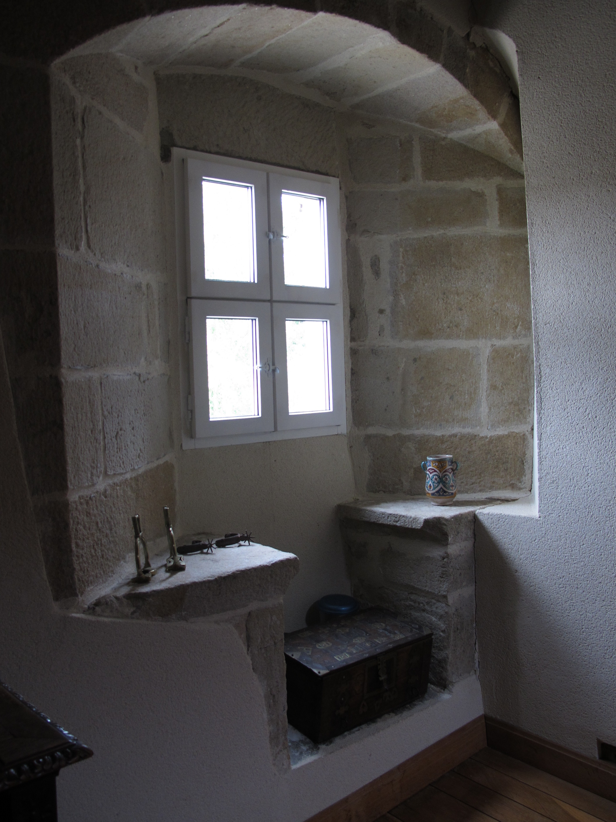 Etage, fenêtre centrale, ébrasement intérieur et coussiègesImmatriculation