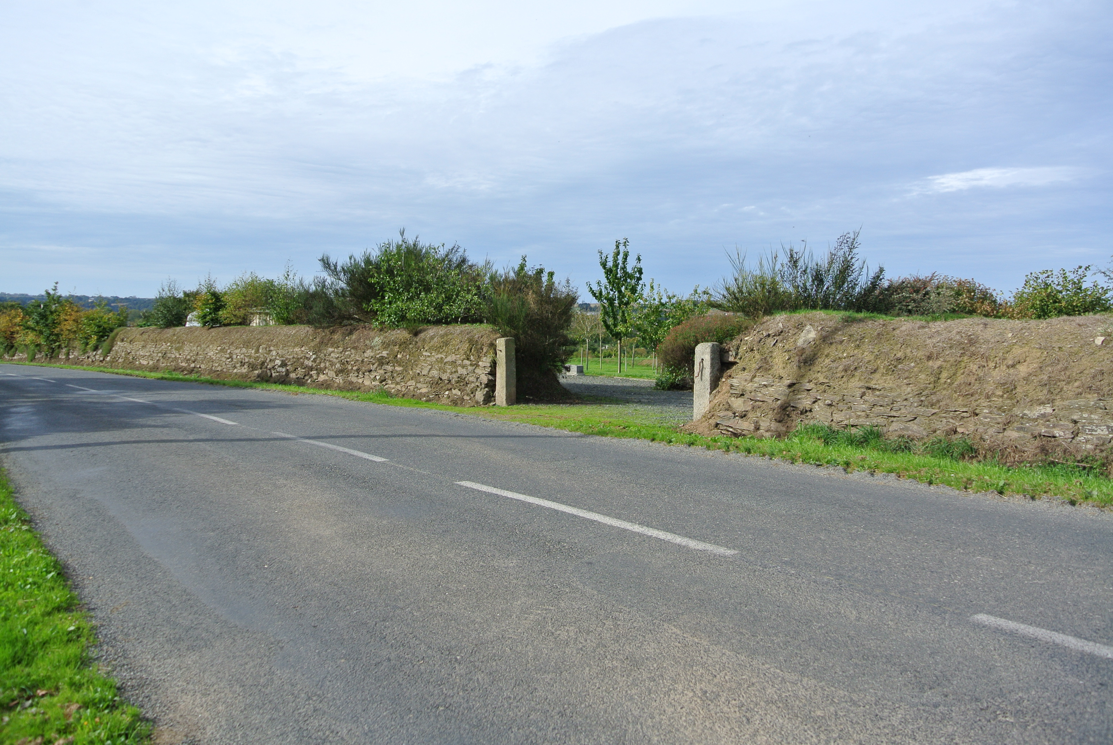 Route départementale D33. Krec'h Gwenn. Talus-mur et entrée de champ. Vue généraleImmatriculation