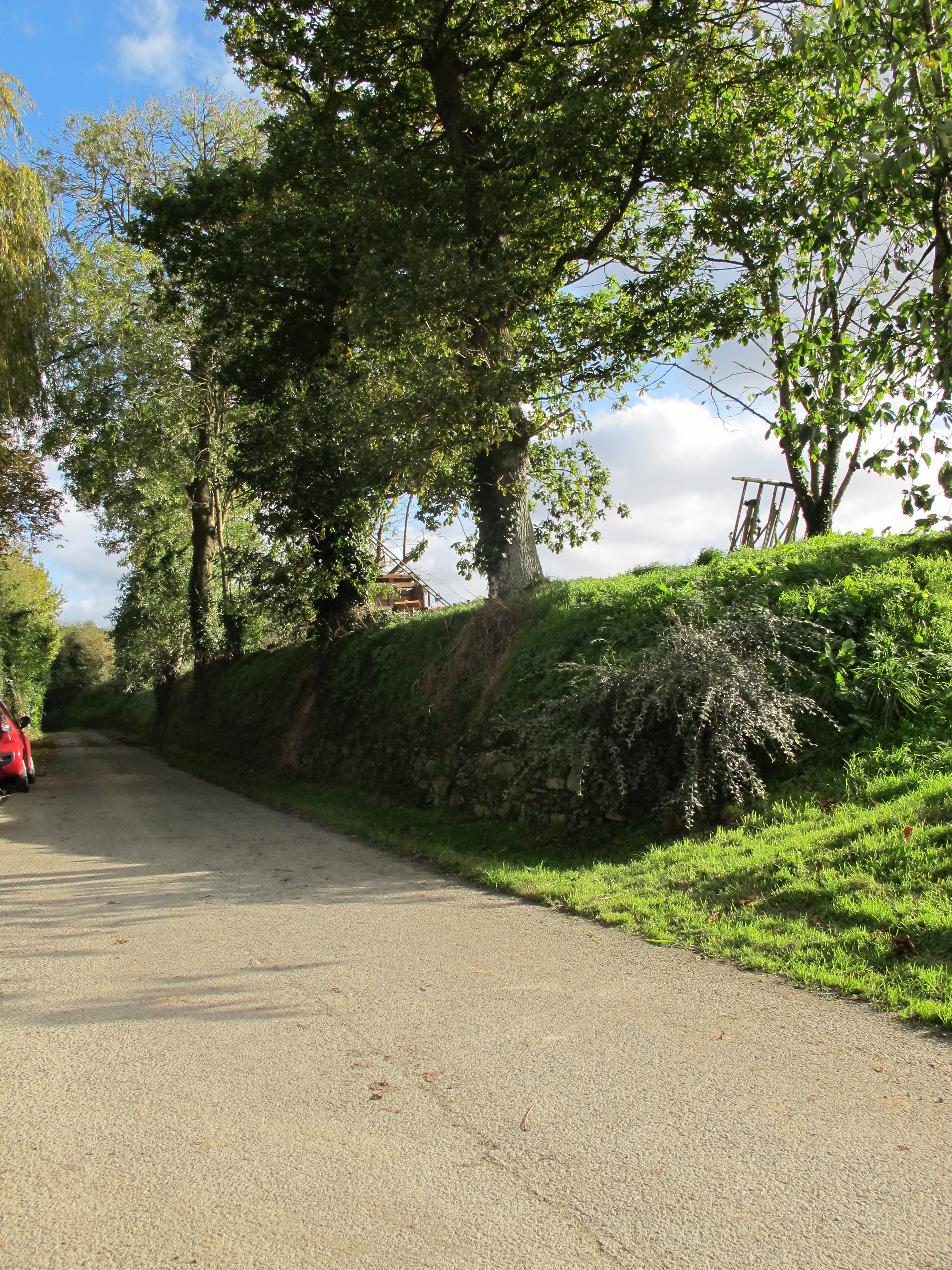 Kermeur-Vihan. Route bordée d'un talus-mur. Vue générale ouestImmatriculation