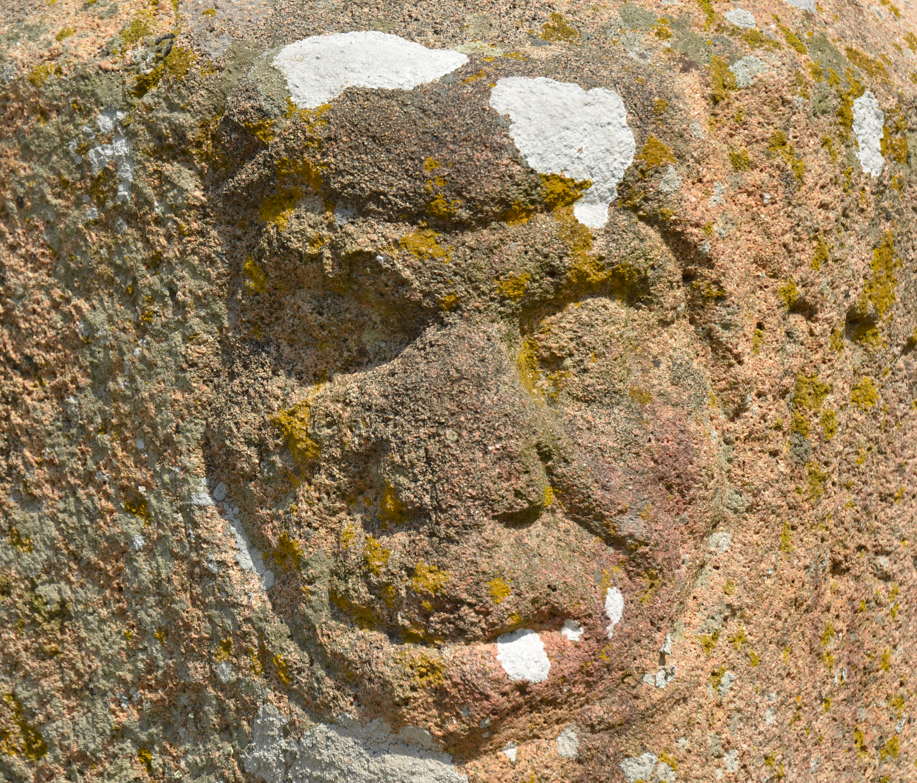 Langoat, carrefour des convenants Tano, Lucas et Pichoret : croix de chemin de Kervot, détail du socle sculptéImmatriculation