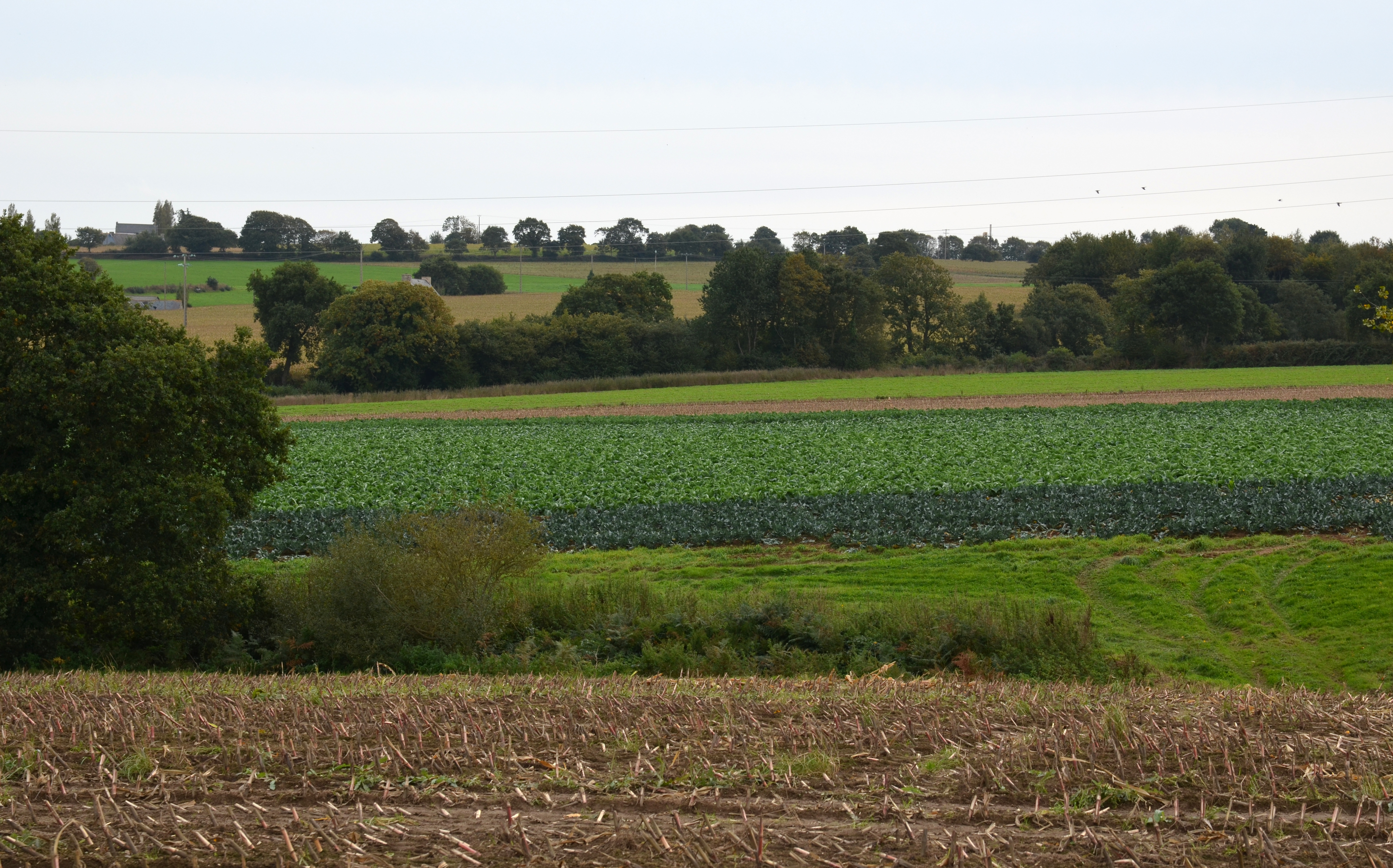 Langoat, à l'est de Cosquer Roux : le paysage vers le sud-ouest. Au premier plan : le maïs vient d'être récoltéImmatriculation