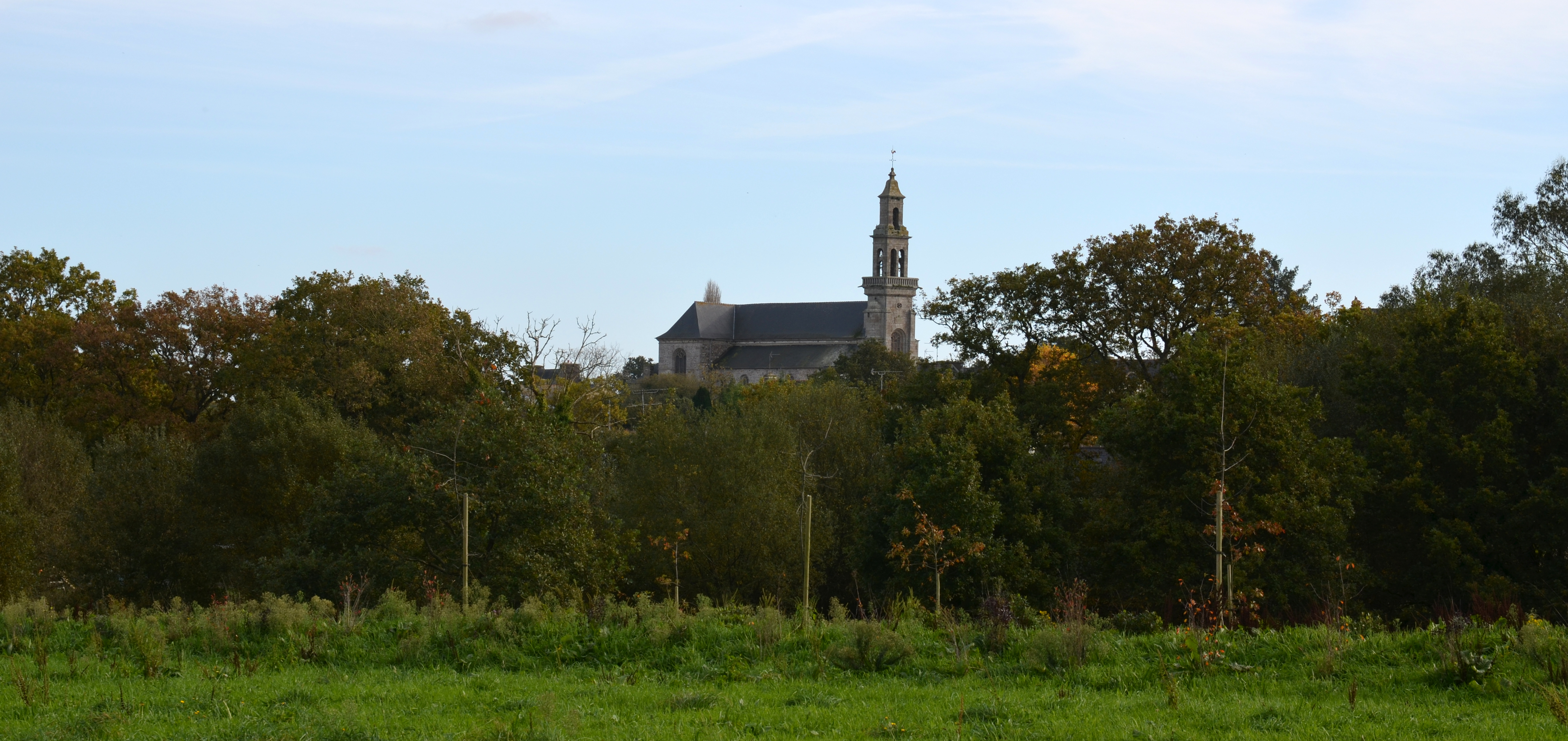 Langoat, Le Launay : vue vers le sud-est et l'église paroissiale depuis le manoirImmatriculation