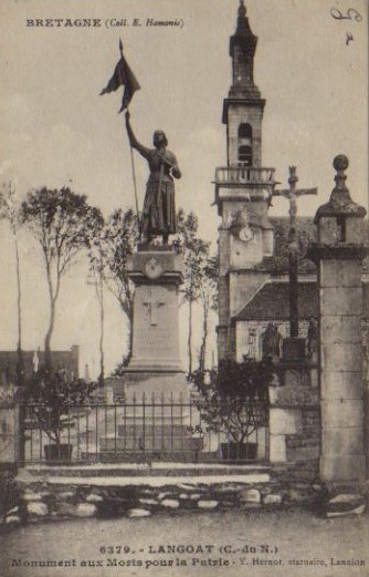 Langoat : vue générale du monument aux Morts depuis le sud, carte postale (collection particulière)Immatriculation