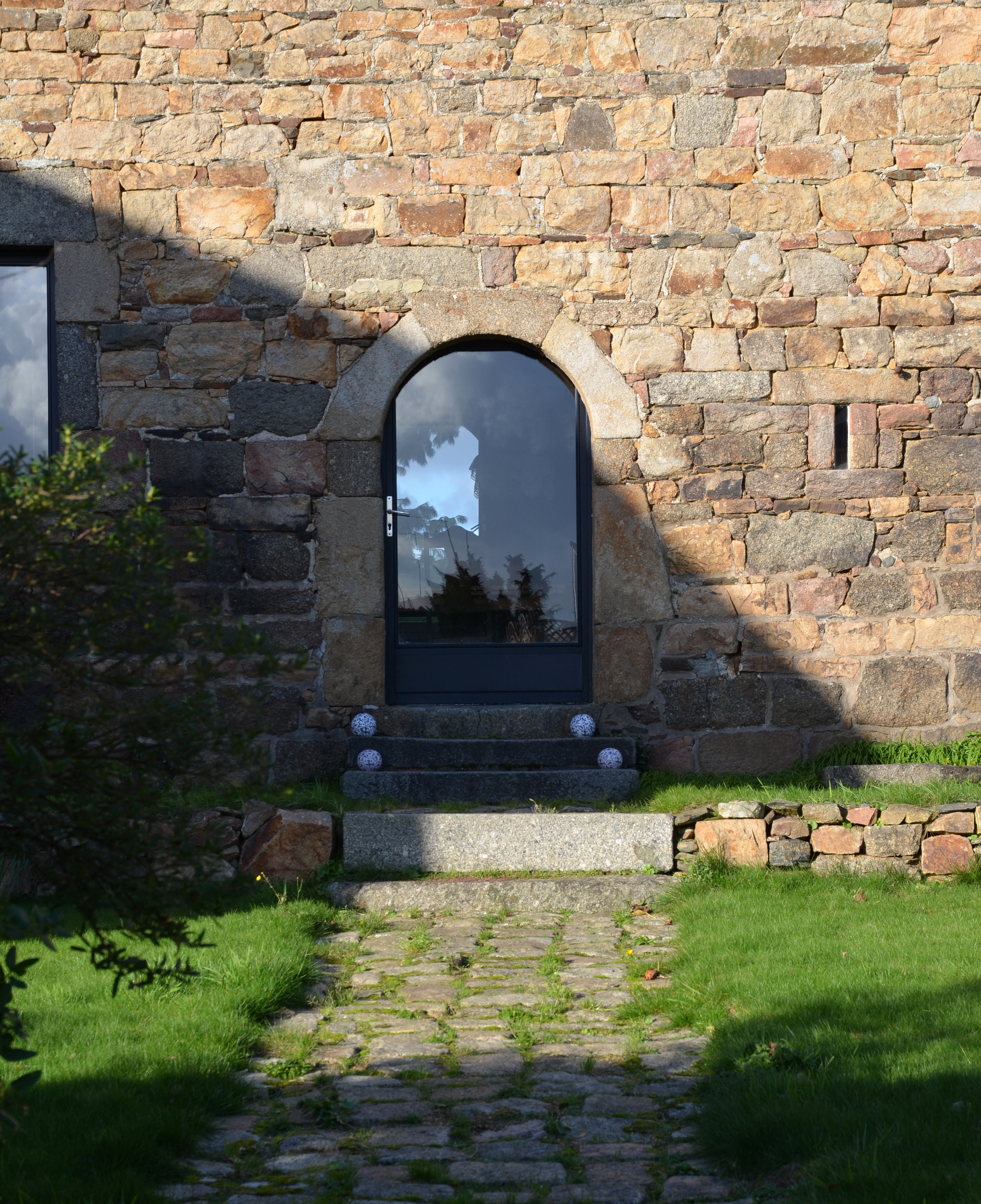 Mantallot, au nord du Bourg : manoir de Kerilis, élévation antérieure orientée vers le sud, vue de détail des ouvertures de la partie ouest, porte en arc plein cintre et petit jour du saloir muralImmatriculation