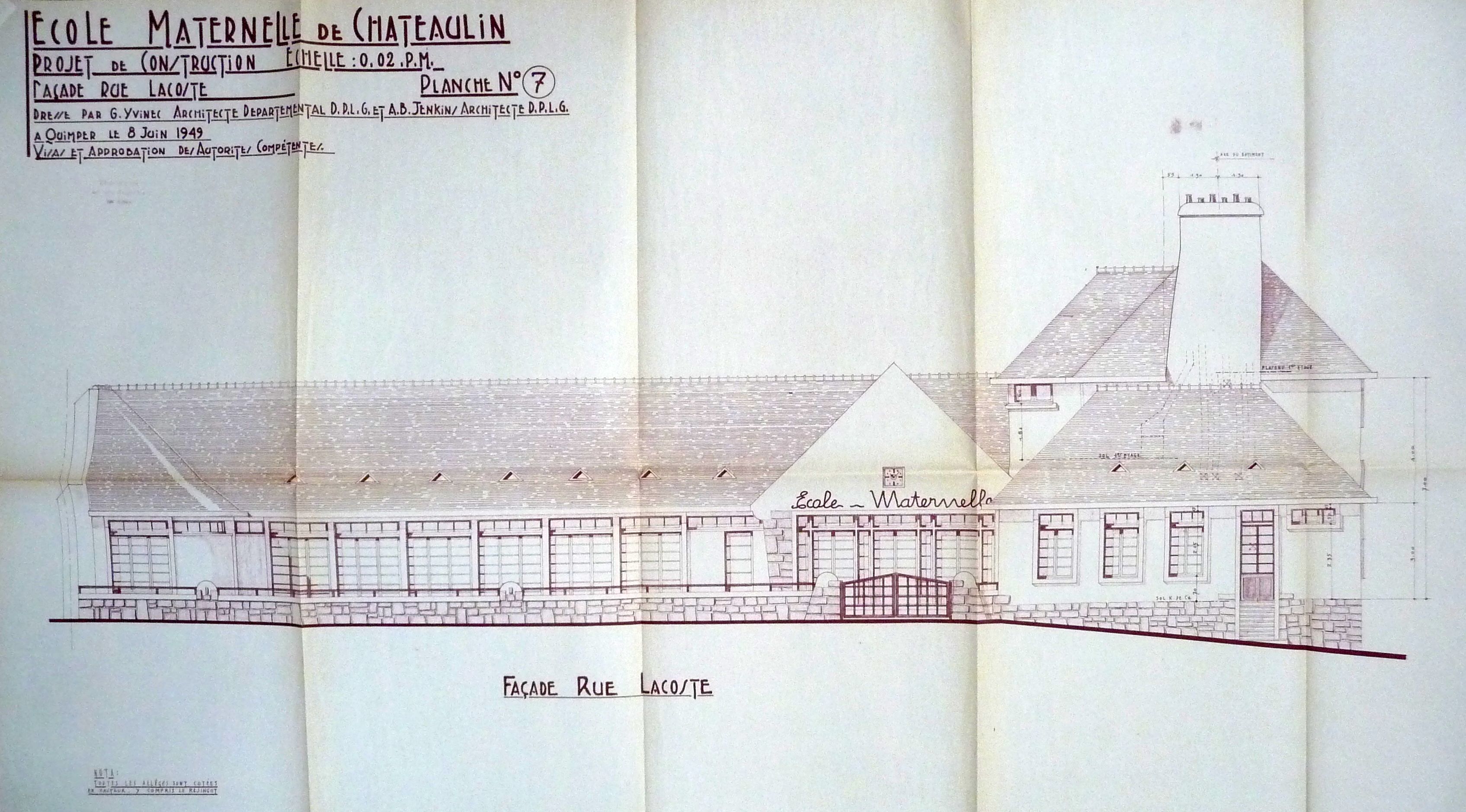 Plan, projet de reconstruction, Yvinec et Jenkins, 1949Immatriculation