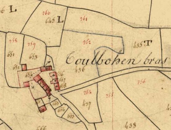 Le hameau de Toulboën en 1824. Extrait du cadastre ancien (A.D. 29, série 3P 2/19. Section D1)Immatriculation