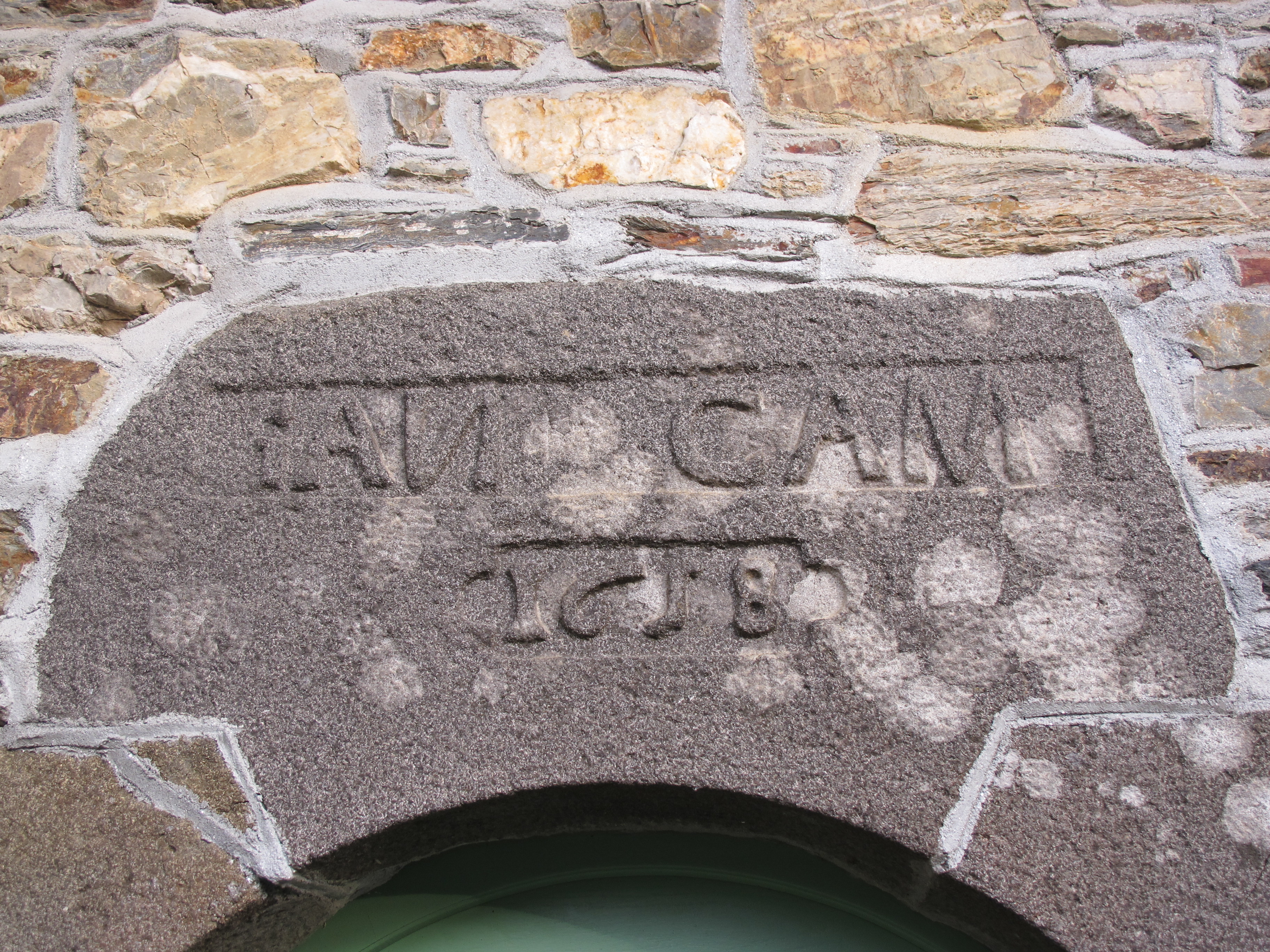 Porte du rez-de-chaussée, détail de l'inscriptionImmatriculation