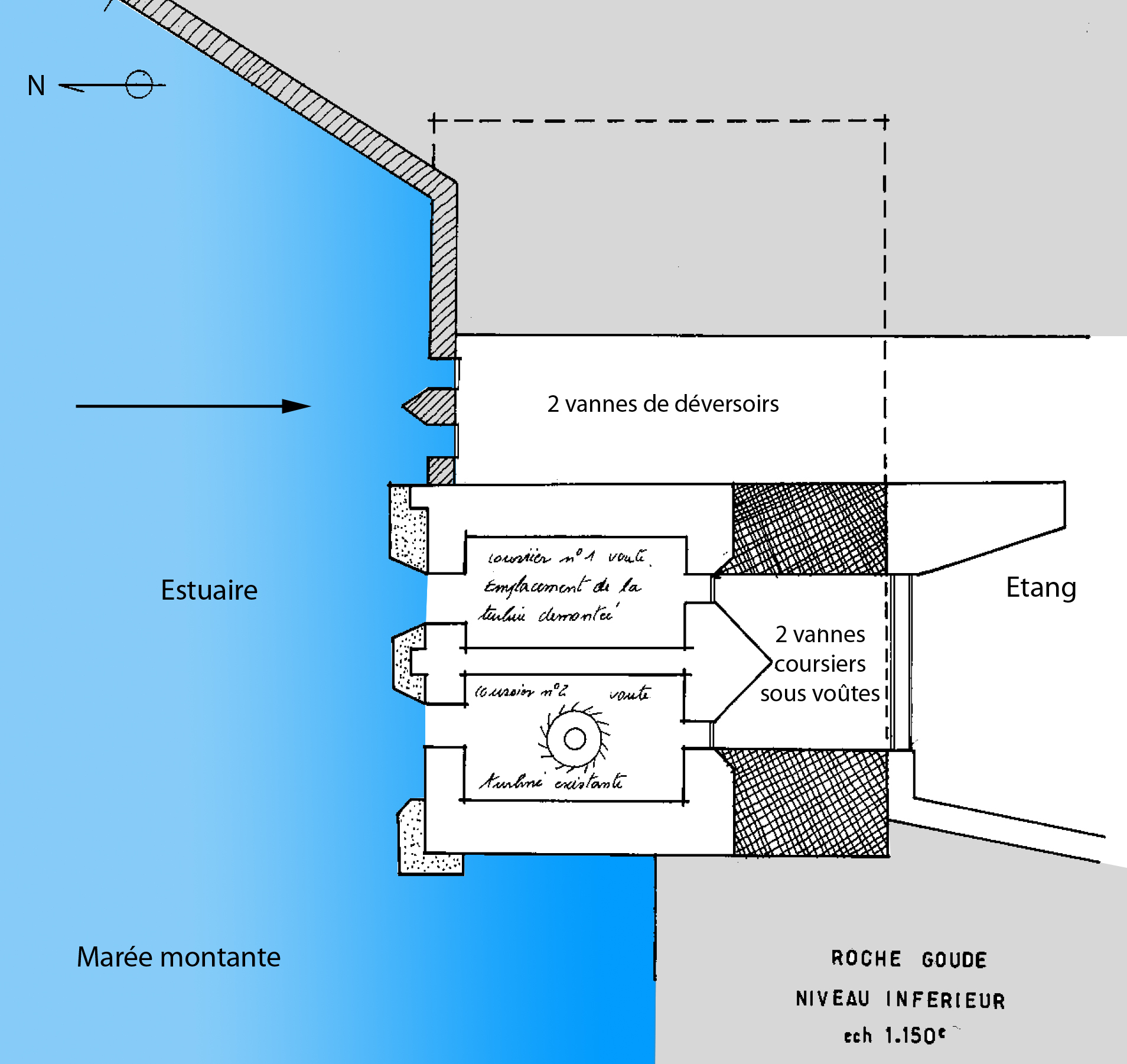 Le principe de fonctionnement des moulins à marée, sur l'exemple du Moulin de Rochegoude, situé à Saint-Briac. Phase 1 : Marée montanteImmatriculation