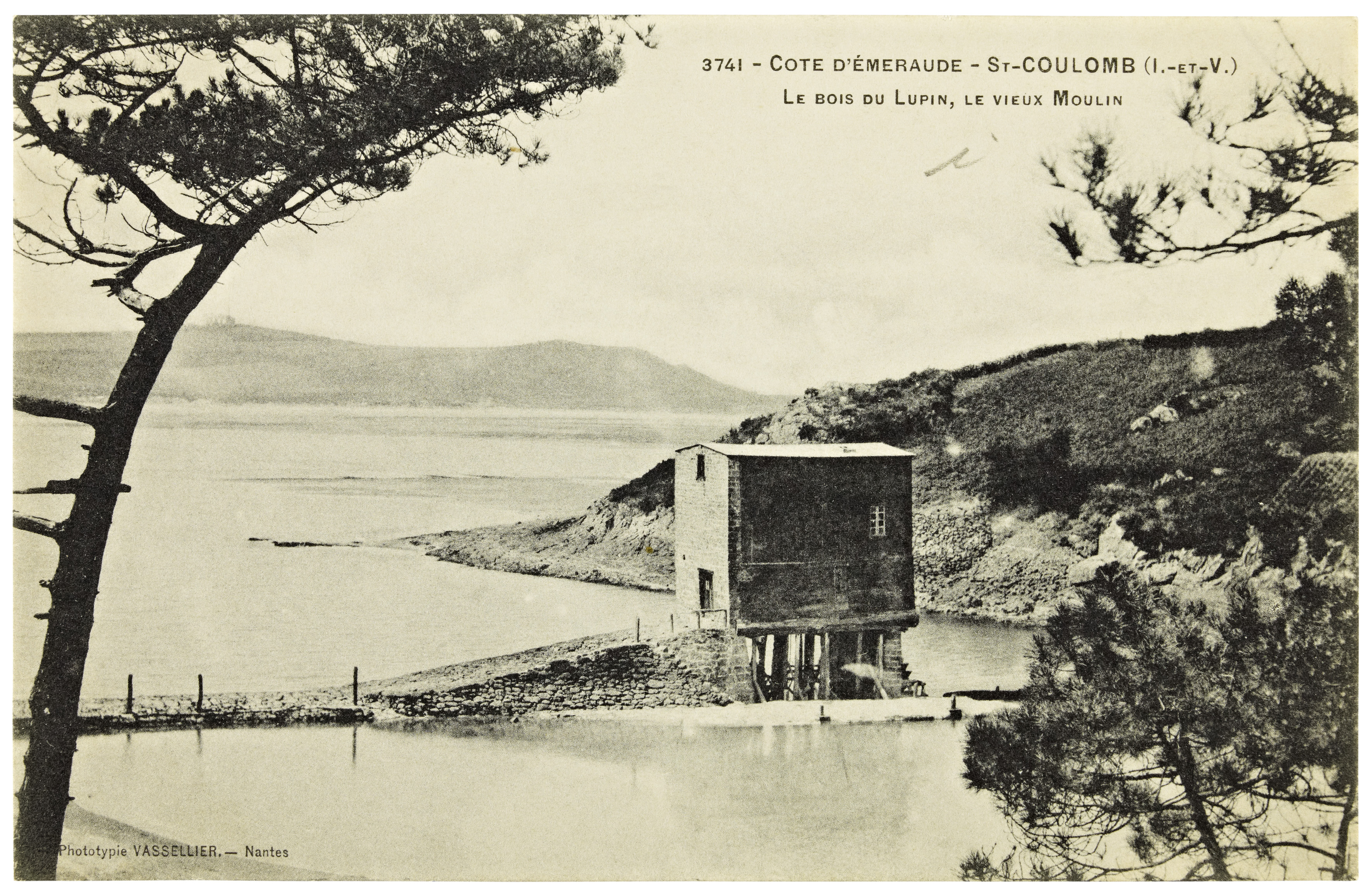 Carte postale ancienne du moulin à marée du Lupin (Saint Coulomb)Immatriculation